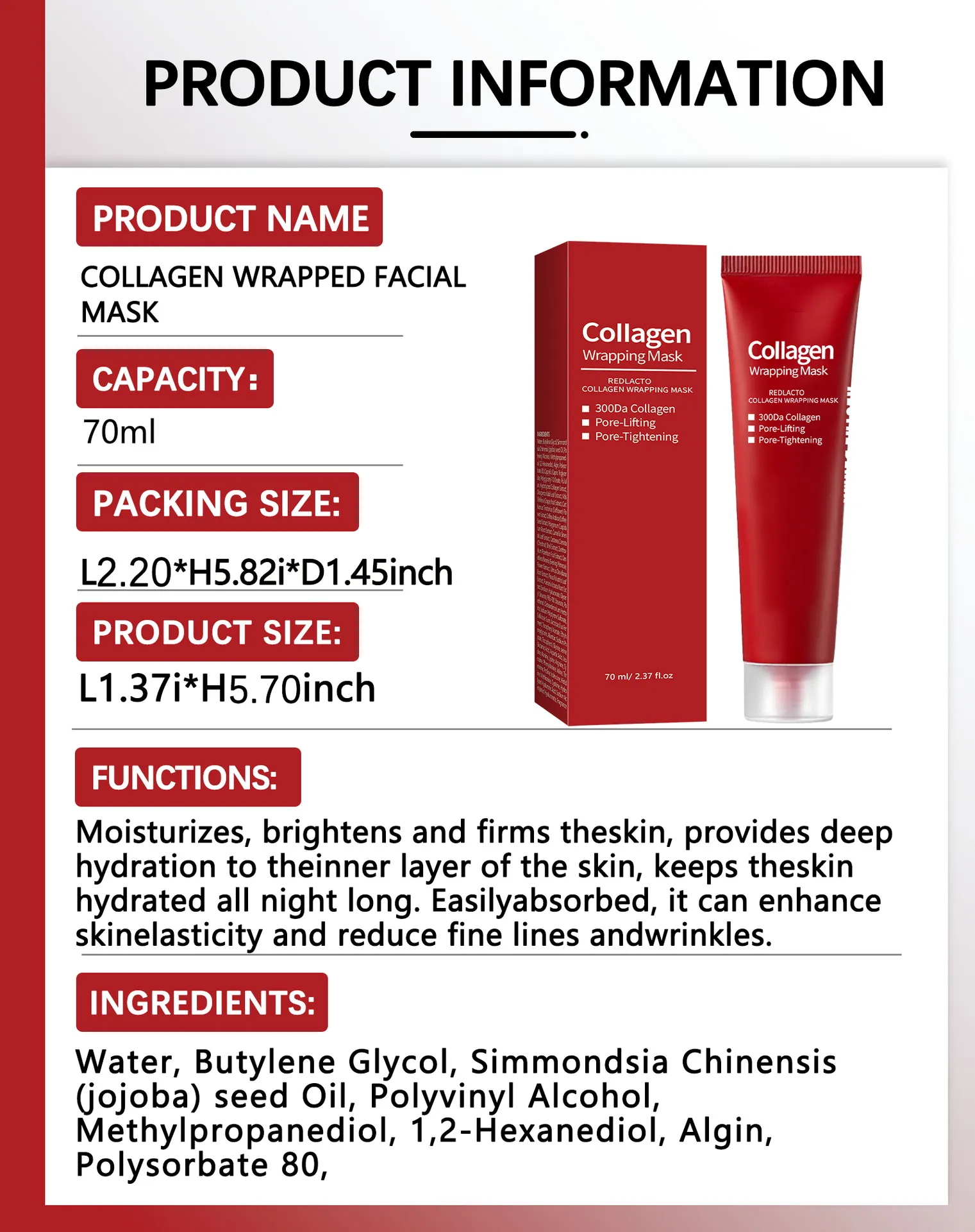 Red Lactic Acid Collagen Mask Brightening And Moisturizing