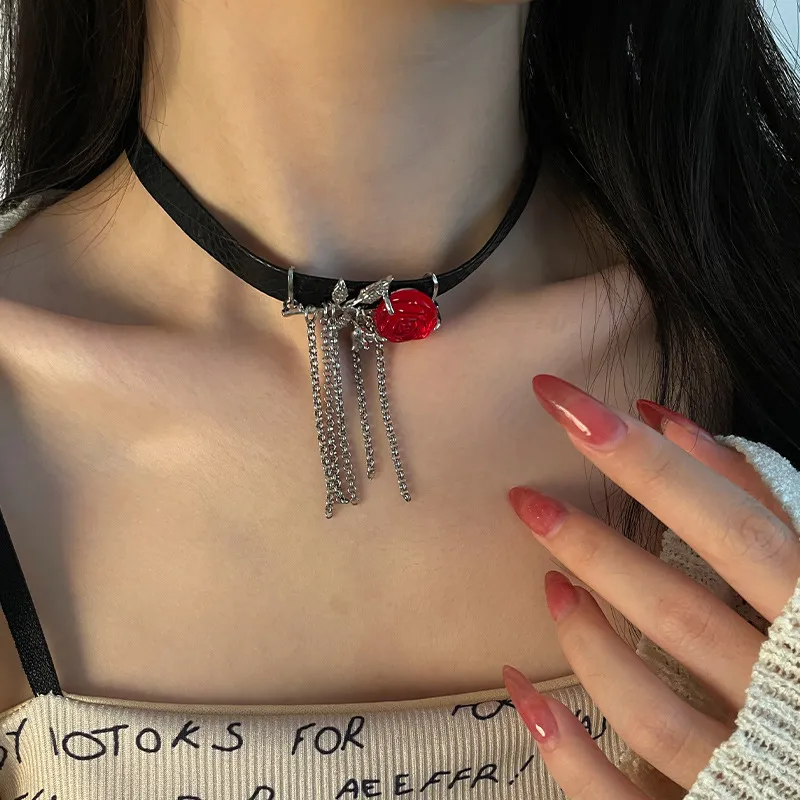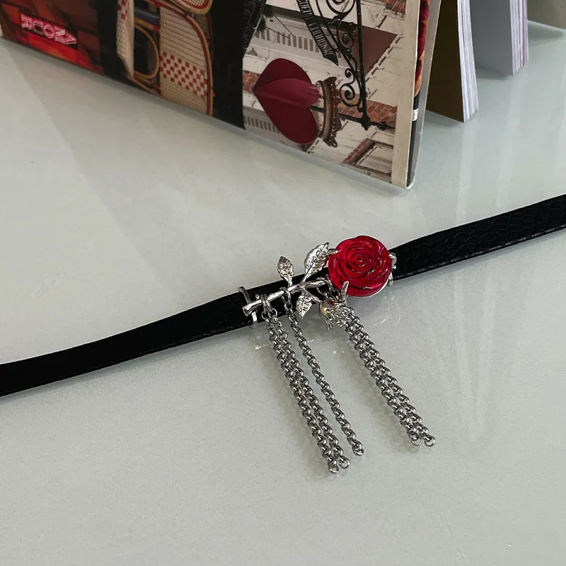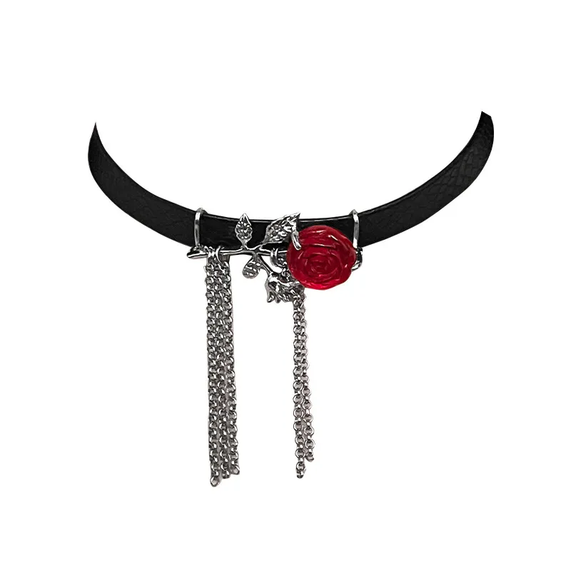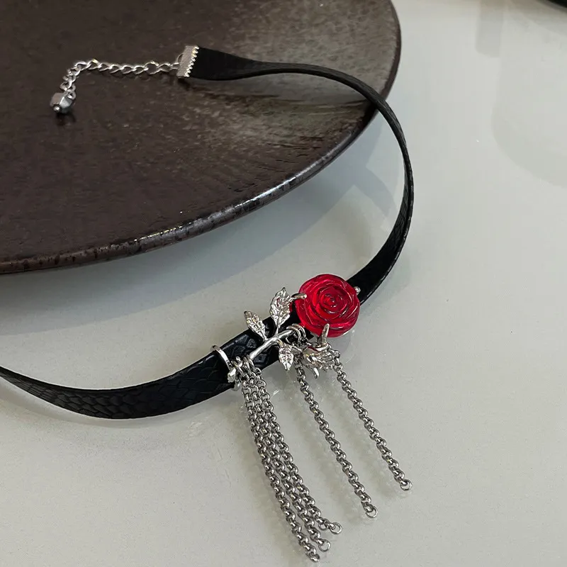 Red Rose Dark Tassel Necklace For Women