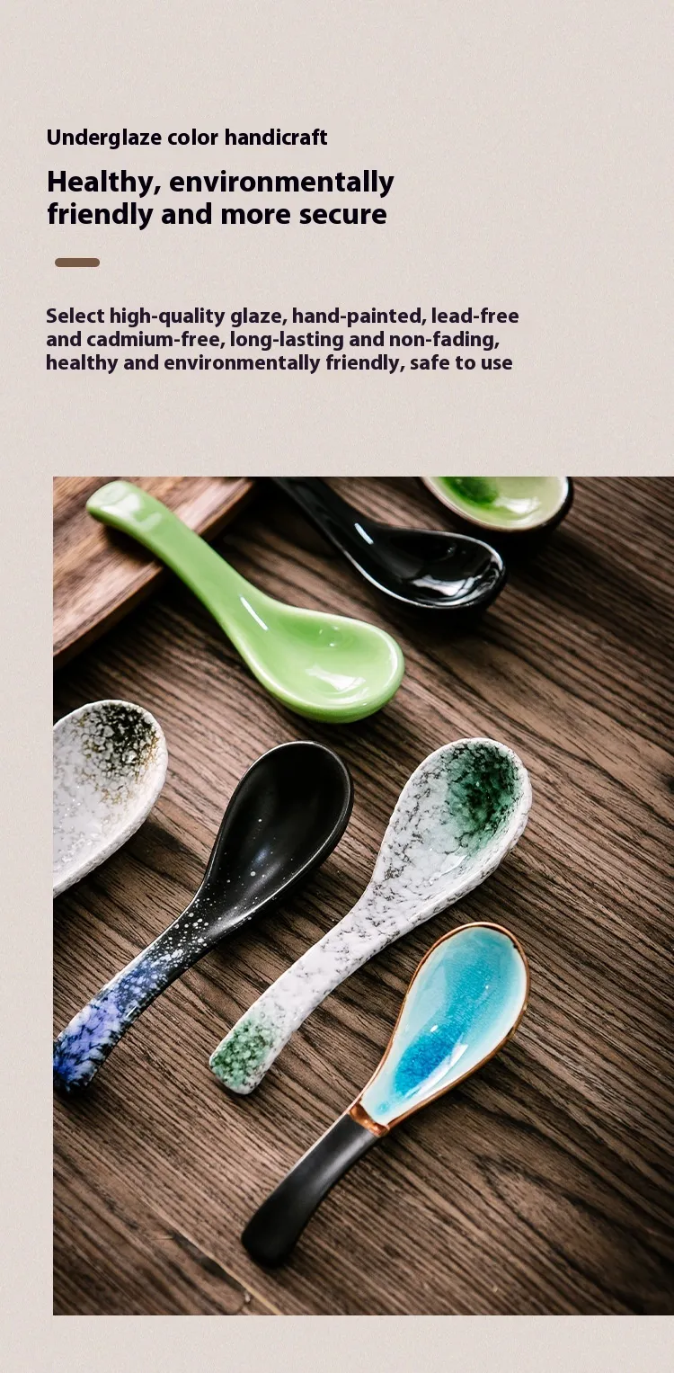 Restaurant Home Kitchen Utensils Creative Retro Ceramic Long Handle Spoon