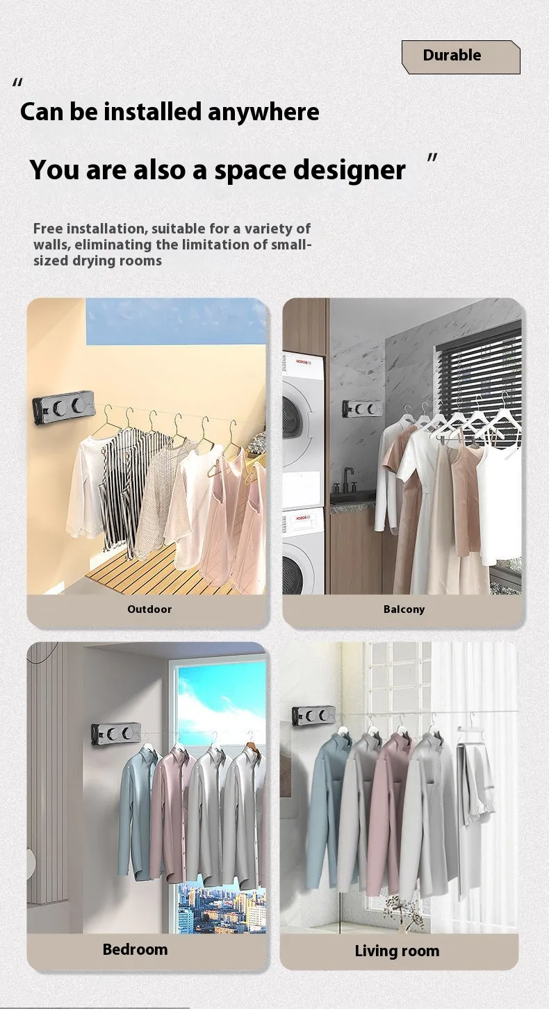 Versatile Usage: Suitable for both indoor and outdoor drying, it can be installed on balconies, patios, or in laundry
