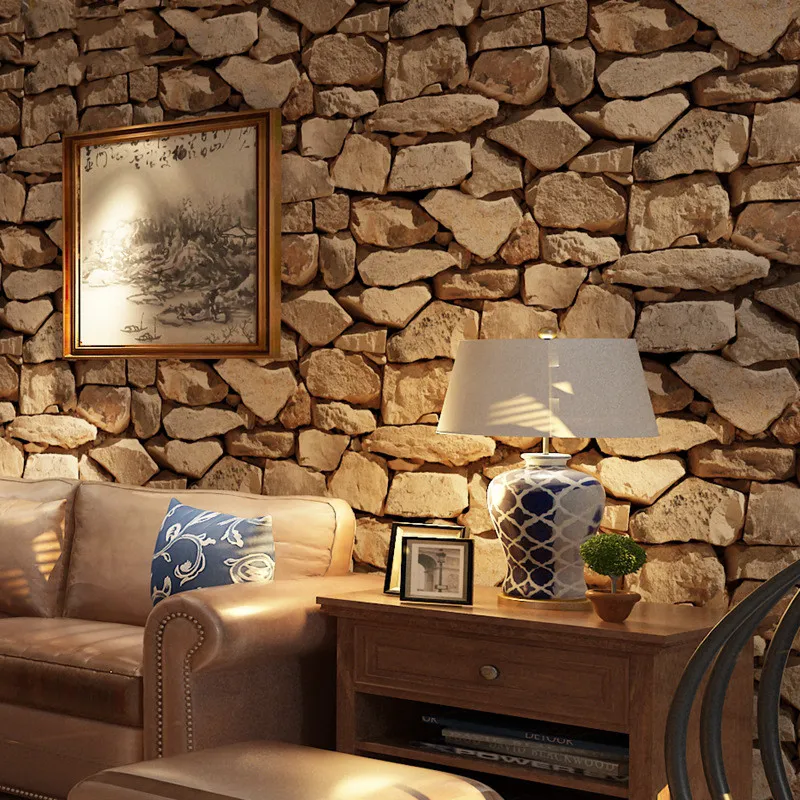 The Retro 3D Simulation Brick Pattern Solid Stone Wallpaper works beautifully in a wide variety of settings:
