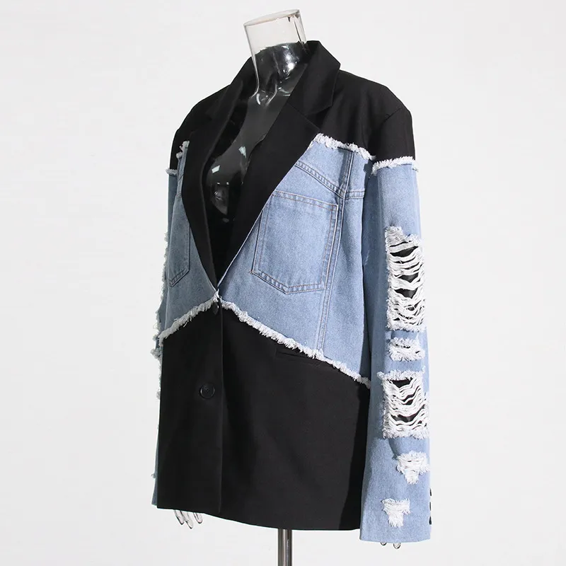 Retro and Trendy Denim Patchwork Jacket: A Timeless Classic with a Modern Twist