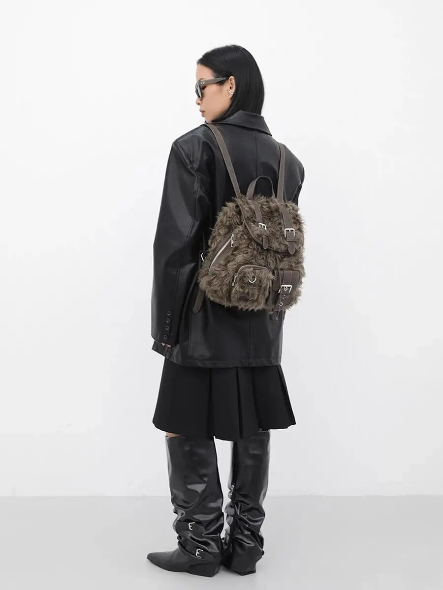 Retro Backpack Bags Plush Large Capacity Bag