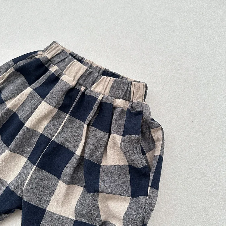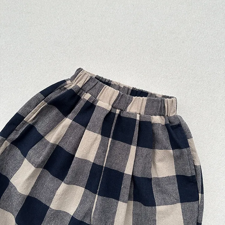 The retro blue plaid design makes them versatile enough to pair with a variety of tops and shoes, ensuring your child looks effortlessly stylish no matter the occasion.