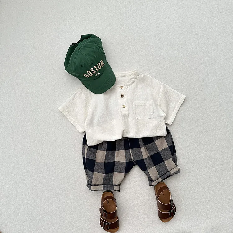 Featuring a retro blue plaid design, these pants combine vintage charm with modern comfort. The capri length makes them great for warmer months, offering freedom of movement and a cool, laid-back look. Whether your child is running around or just enjoying a day in the sun, these pants will keep them looking great and feeling comfortable.