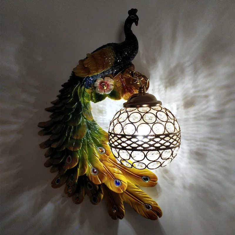 Perfect for living rooms, bedrooms, corridors, and even hotel hallways, the Peacock Wall Lamp serves as both an eye-catching light source and a decorative element. The rich, detailed design of the peacock adds a sense of luxury and artistry to any room, making it an ideal choice for those who want to incorporate classic beauty into their home or business.