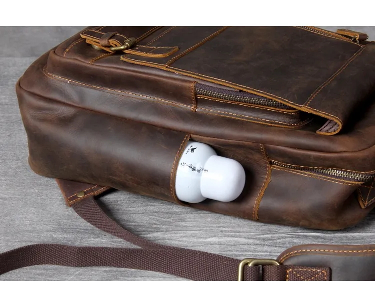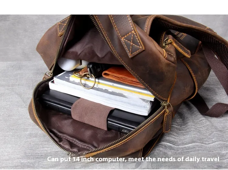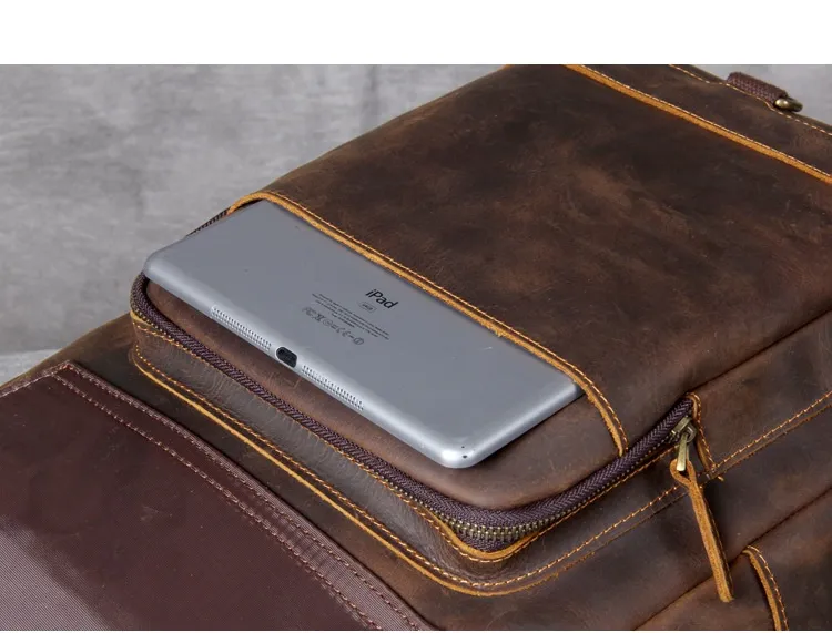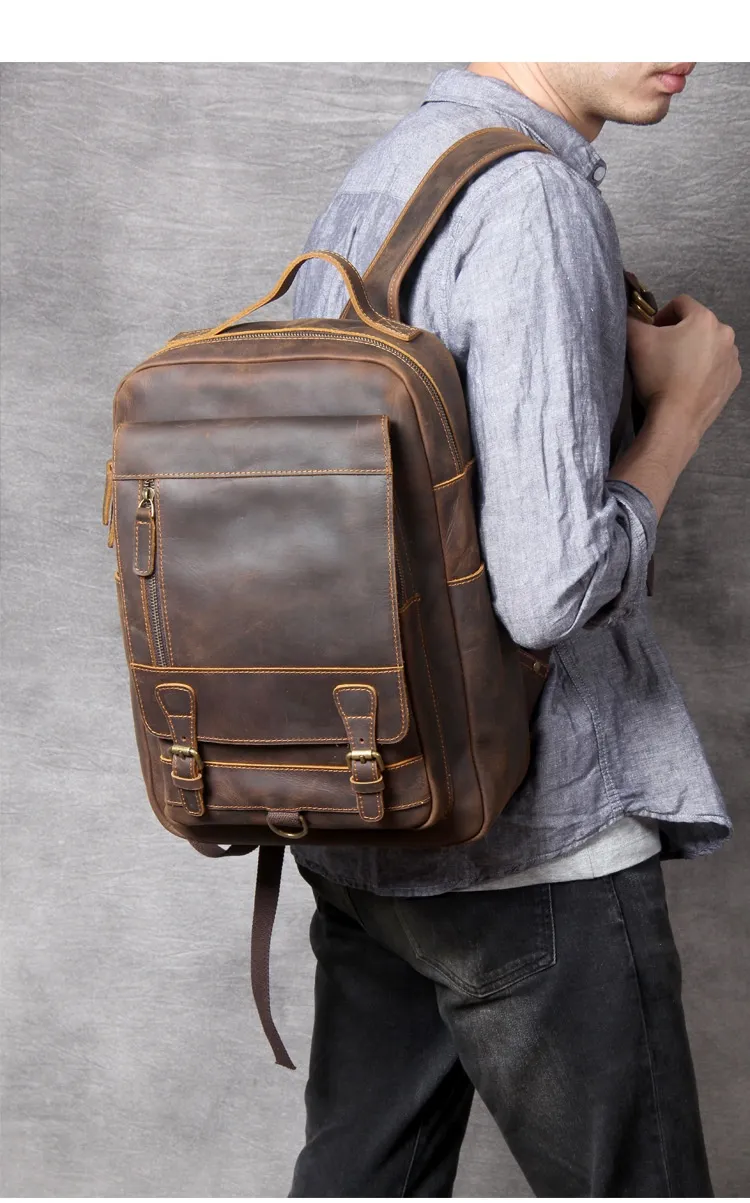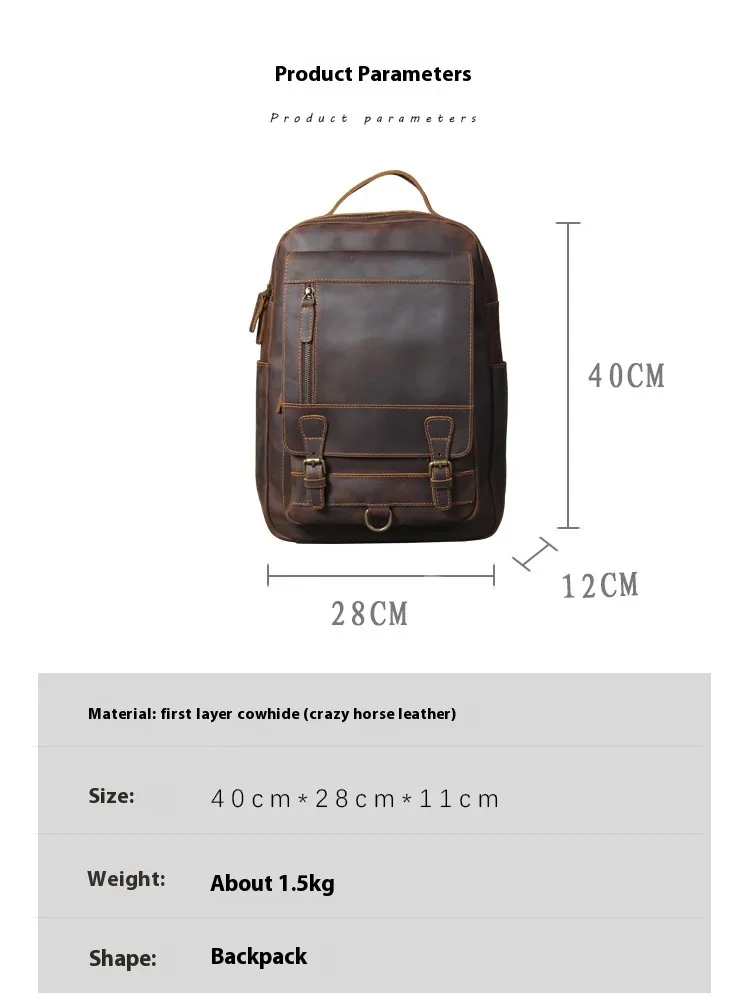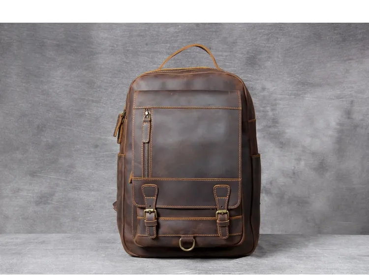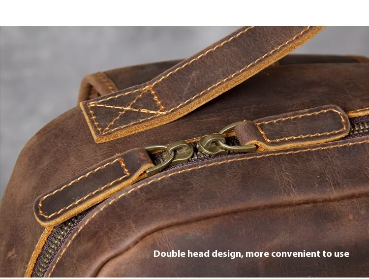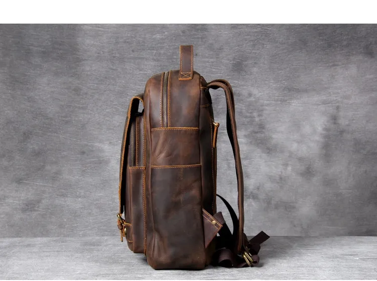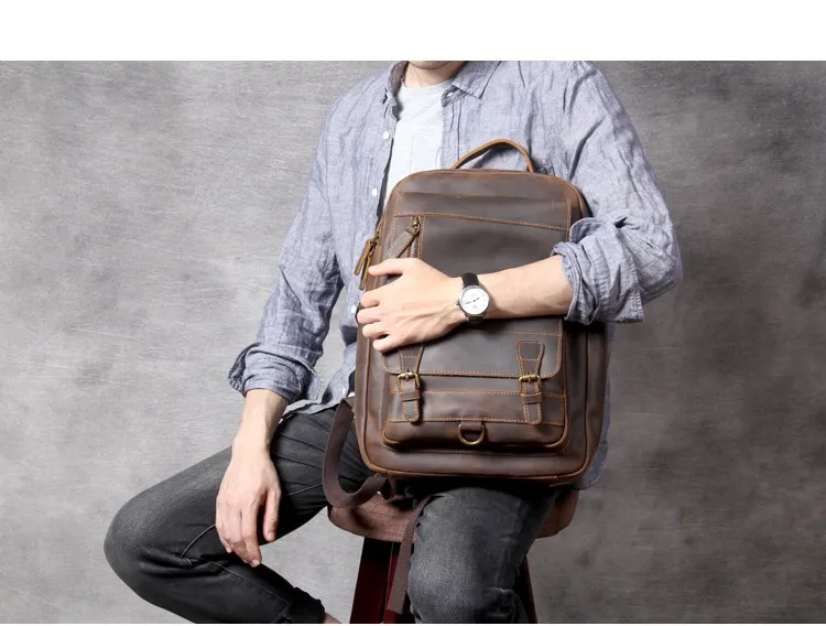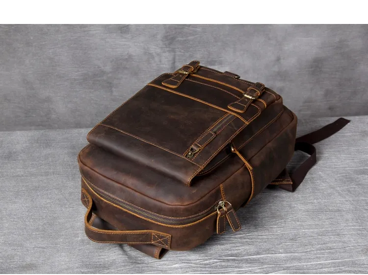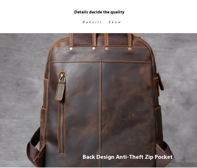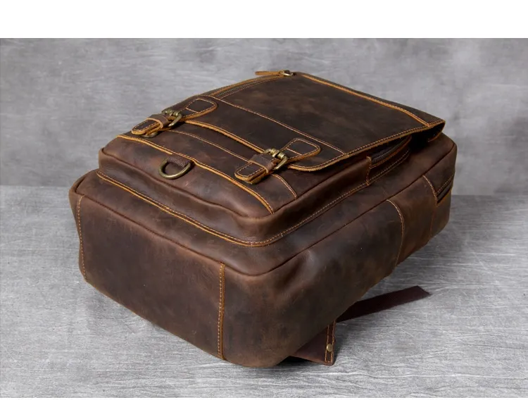 Whether you're headed to work, school, or on a weekend adventure, the Retro Crazy Horse Leather Backpack complements any outfit. Its sophisticated yet rugged appearance makes it suitable for both casual and business settings. In addition to its practical features, this backpack makes a fashion statement, embodying a blend of elegance and adventure.
