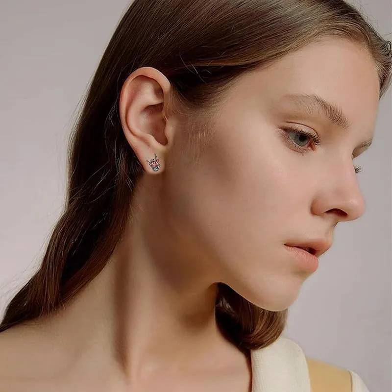 The Retro Dark Series Ghost Hand Gesture Than Heart Diamond Stud Earrings are a must-have for anyone who loves unique and