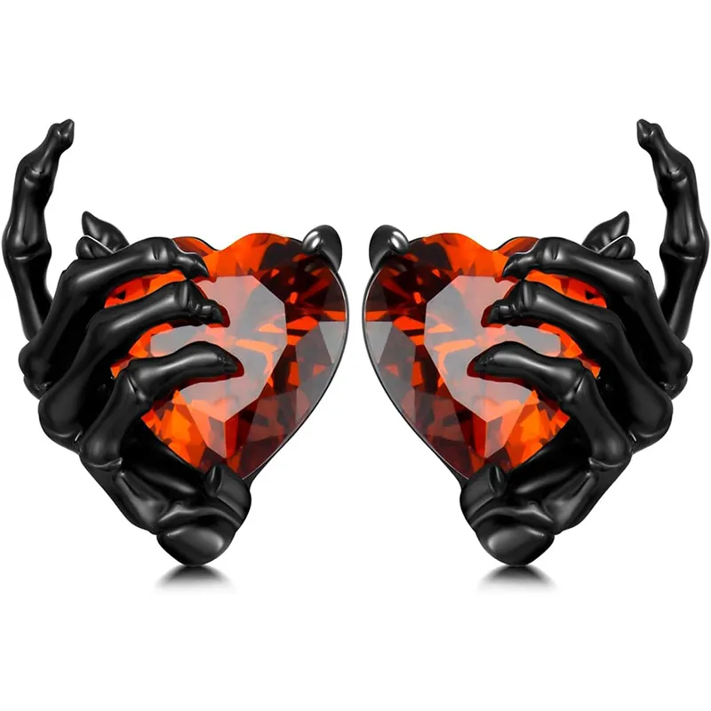 Retro Dark Series Ghost Hand Heart Shape With Diamond Ear Studs