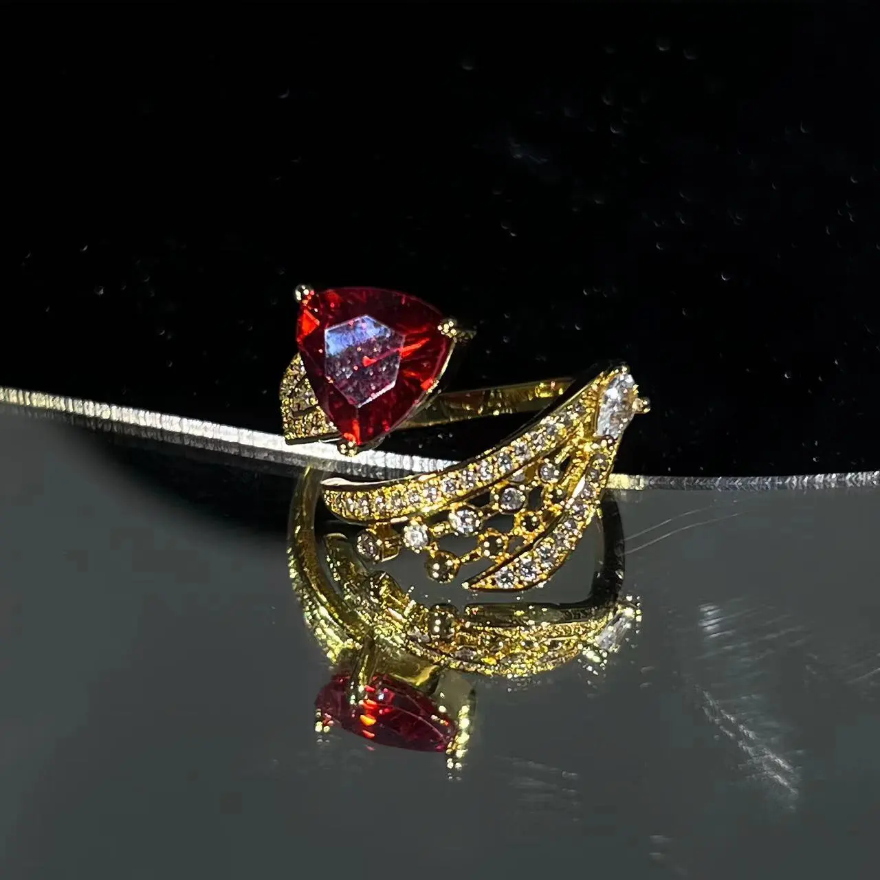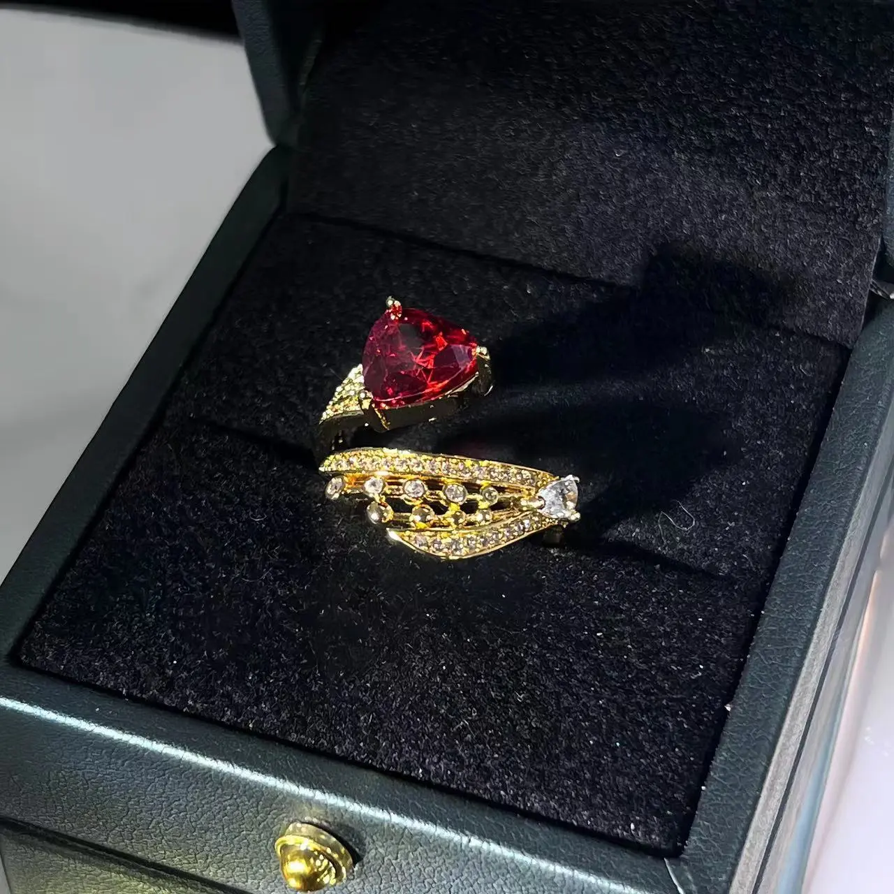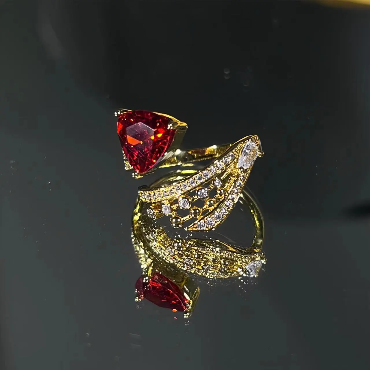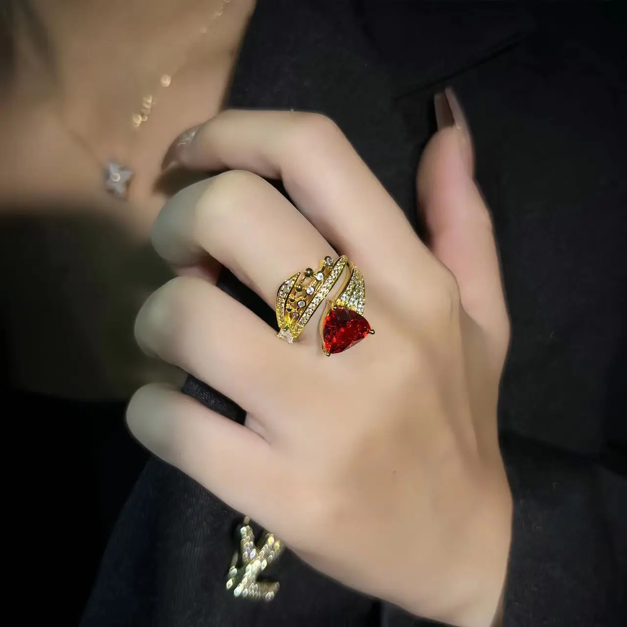 Retro Diamonds Red Opening Gold Ring