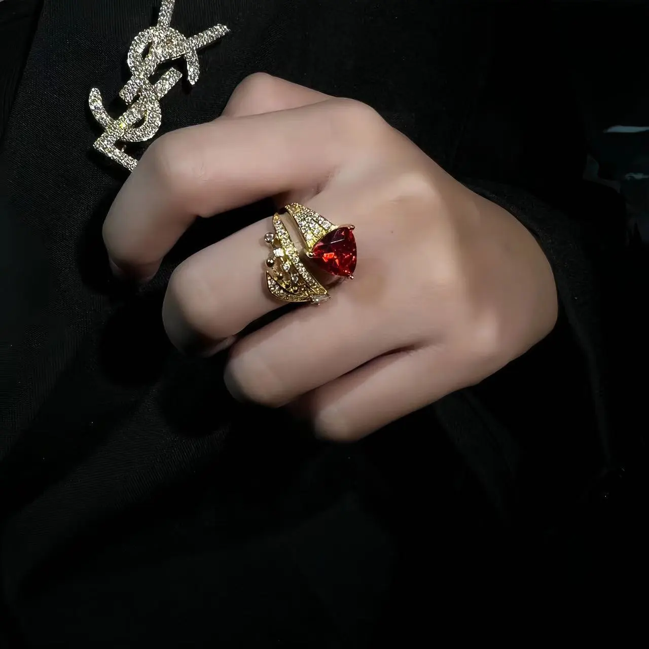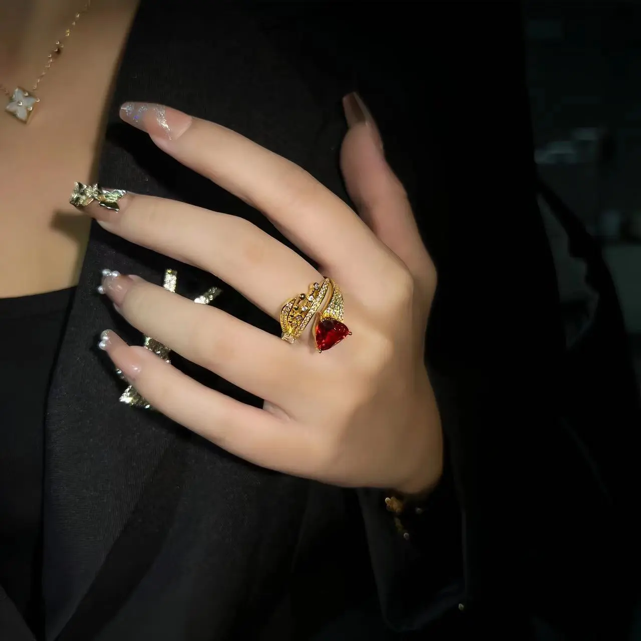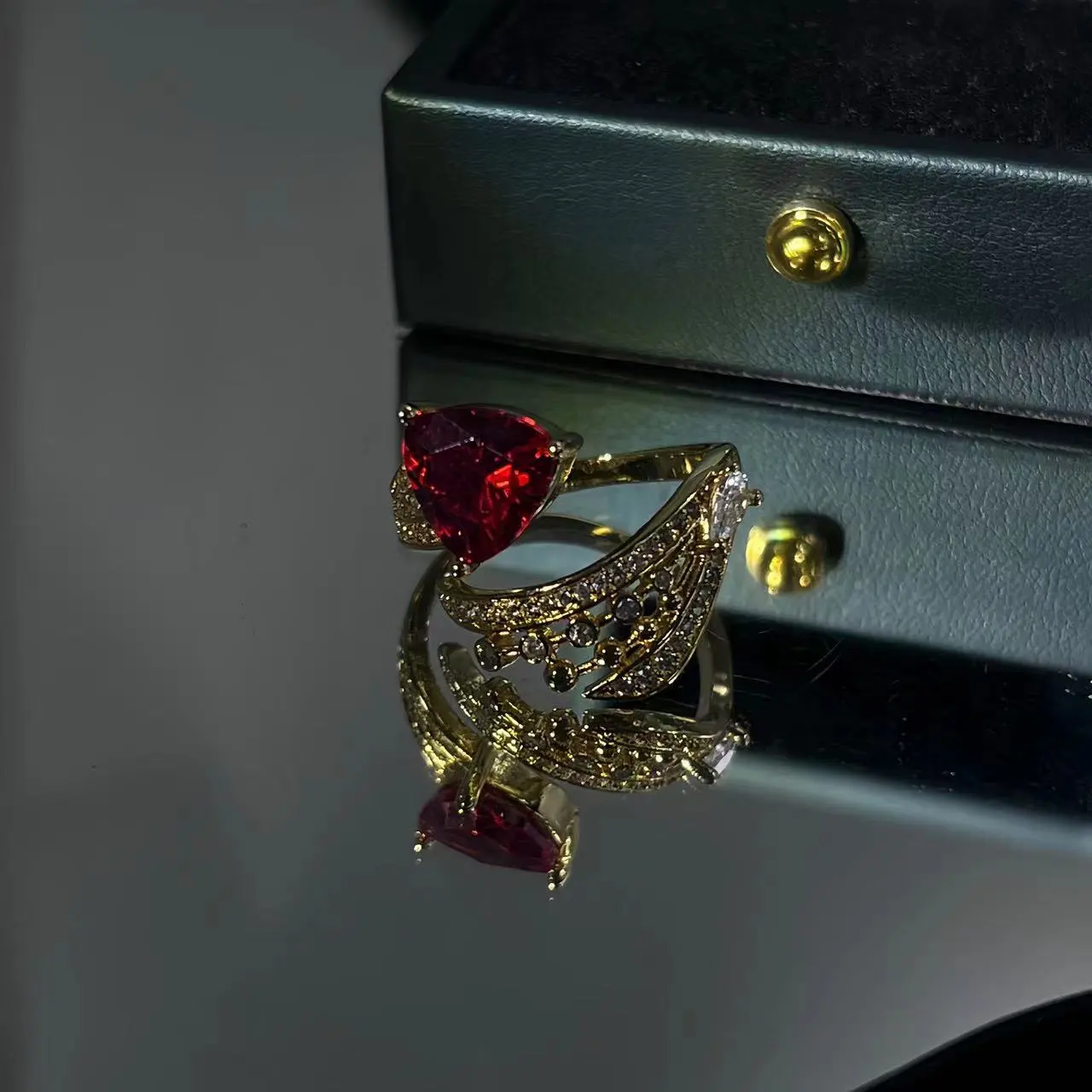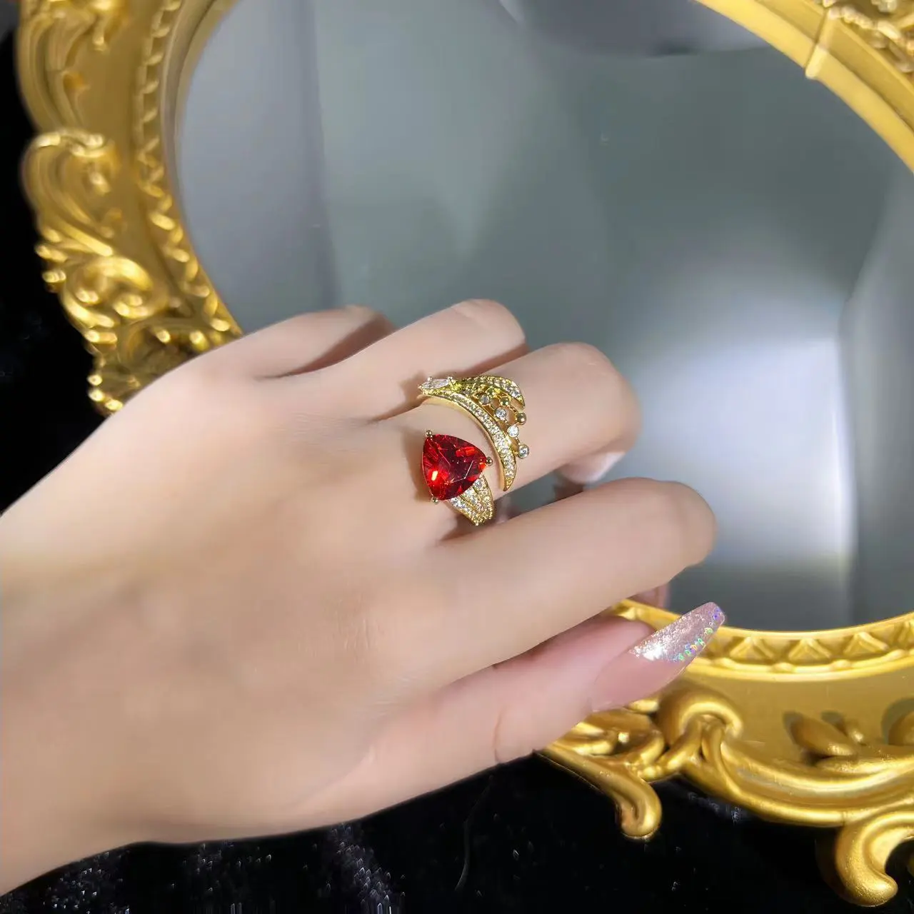Retro Diamonds Red Opening Gold Ring