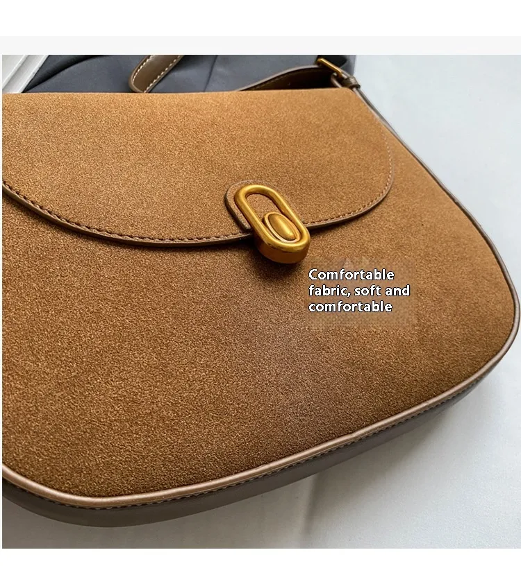 The frosted finish of this saddle bag exudes a sophisticated matte appearance, adding a touch of elegance to your autumn and winter wardrobe. The texture is soft to the touch and visually striking, making it a standout piece.