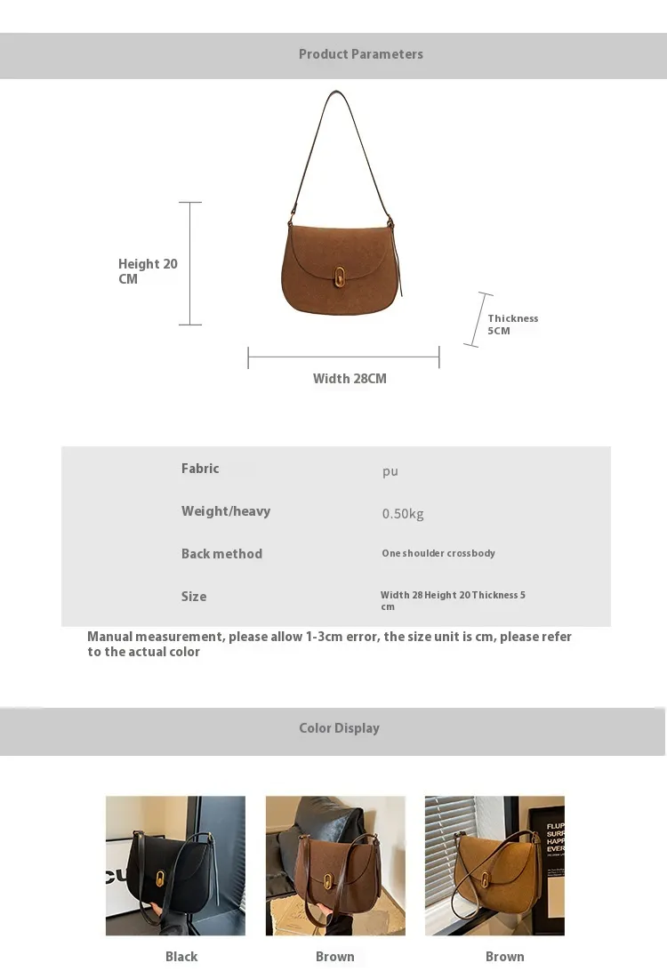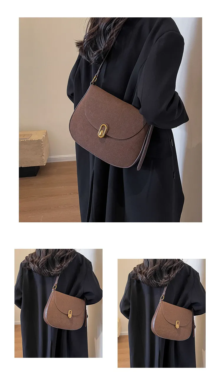 The Retro Frosted Saddle Bag Autumn and Winter is a timeless accessory designed for the fashion-forward woman. With its frosted texture and vintage-inspired saddle shape, this bag is an ideal companion for the cooler months. Whether you’re dressing up for a formal event or adding a touch of sophistication to your casual outfit, this bag complements your style effortlessly.