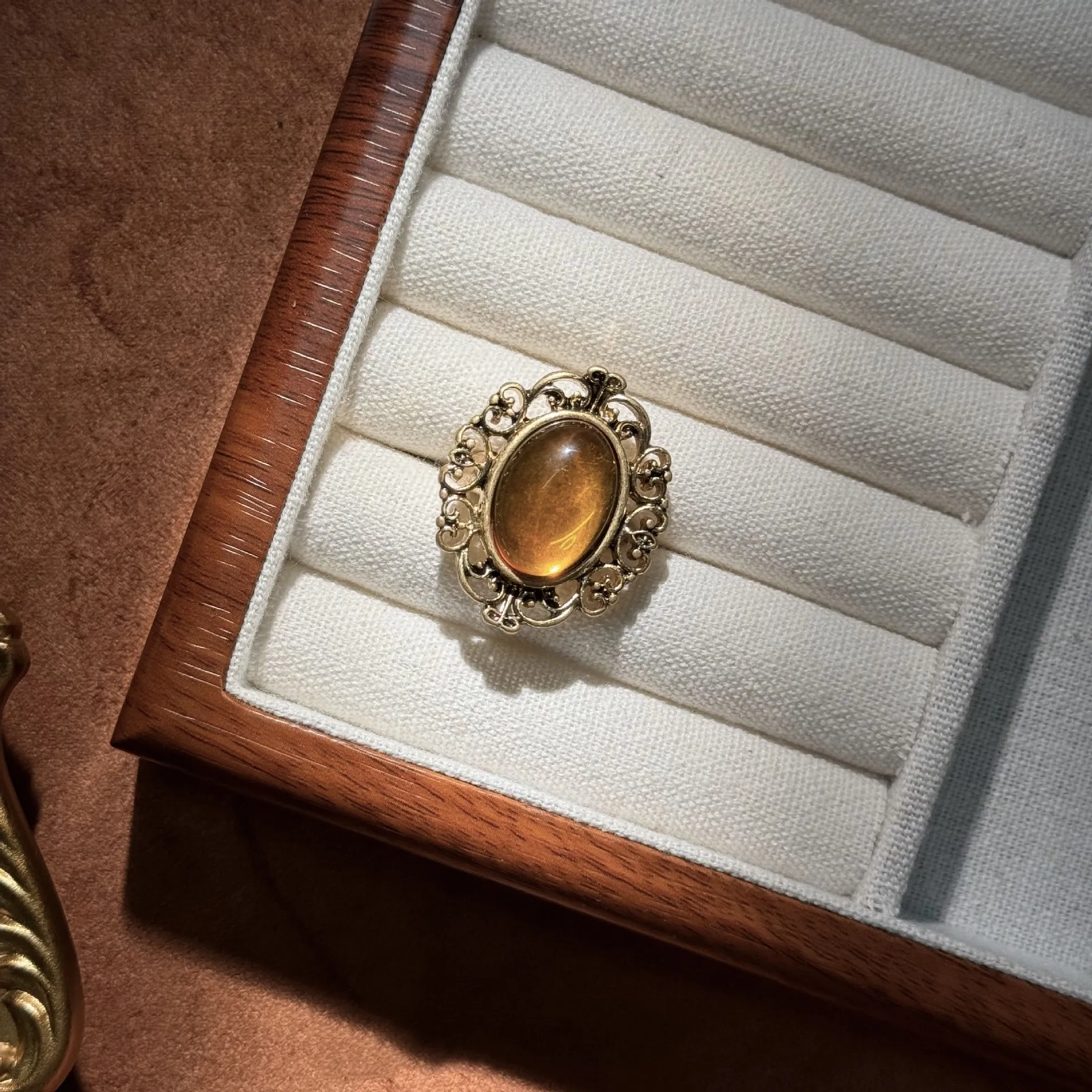 Retro Glass Maillard Light Luxury Ring – A Touch of Vintage Elegance