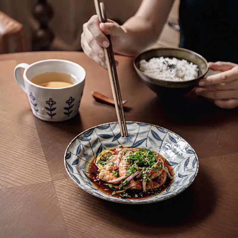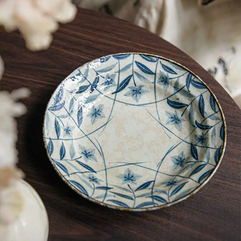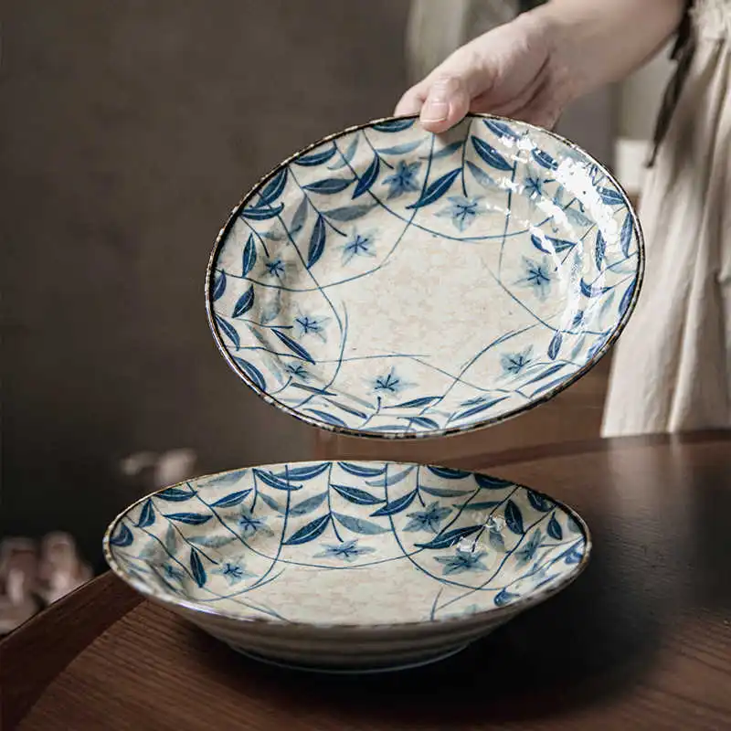 Retro Kikyo Deep Plates Underglaze Porcelain Dish