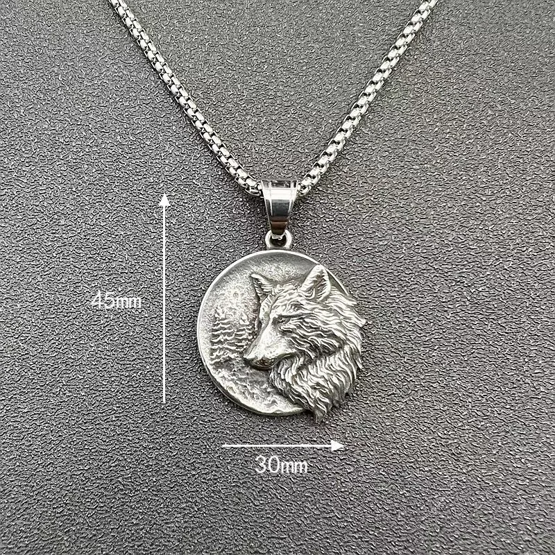 Retro Titanium Steel Viking Wolf Head Pendant