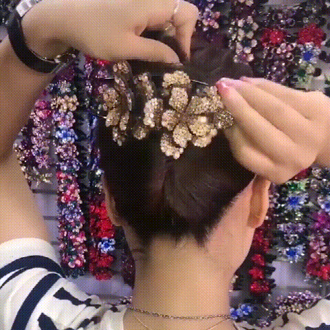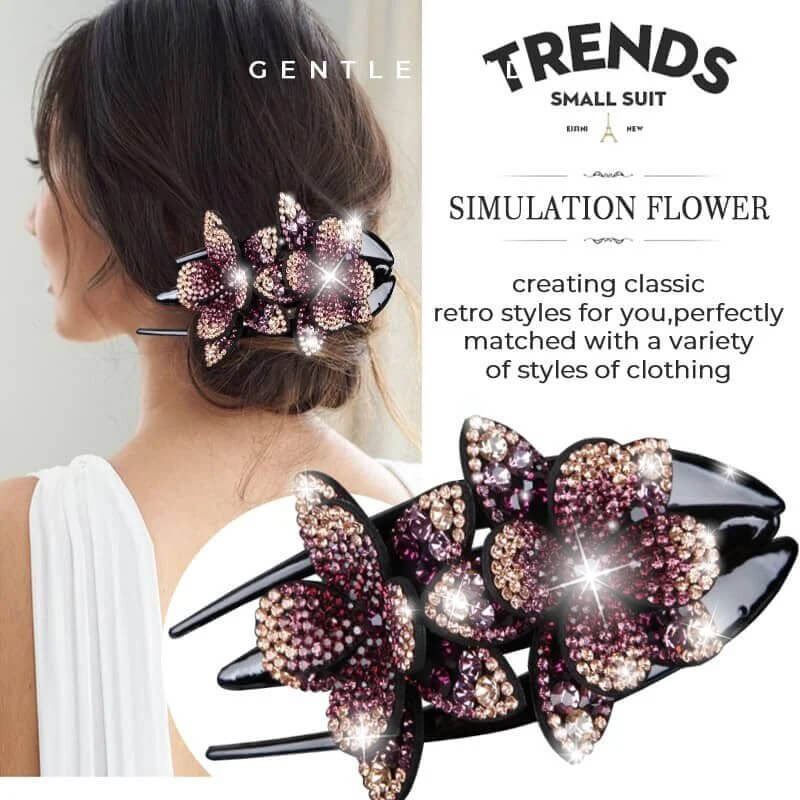 The Rhinestone Double Flower Hair Clip makes your hair bun beautiful and stable. DIY your