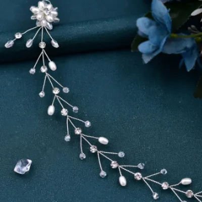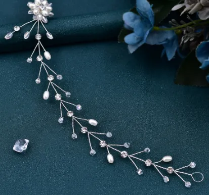 Rhinestone Hair Accessories Simple Handmade Woven Pearl Crystal Updo Modeling Headdress