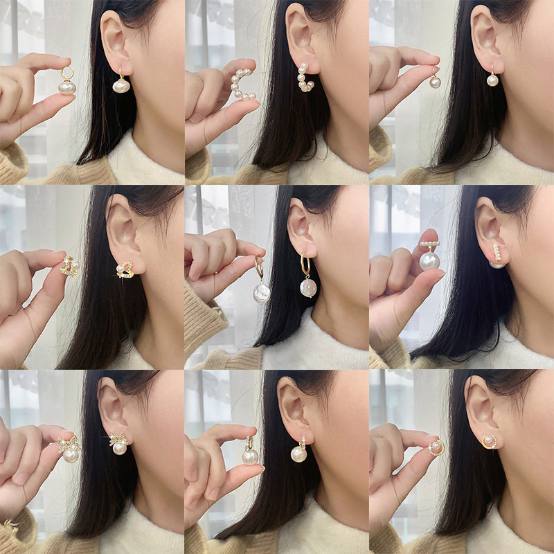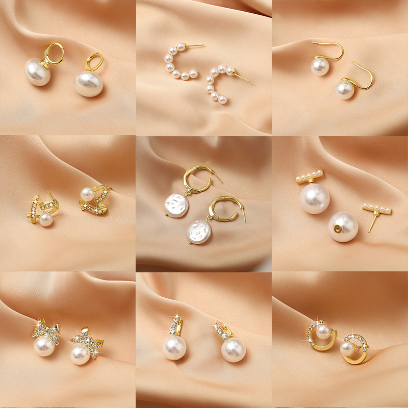 Rhinestone Pearl Ear Studs High Sense Sterling Silver Needle Ornament