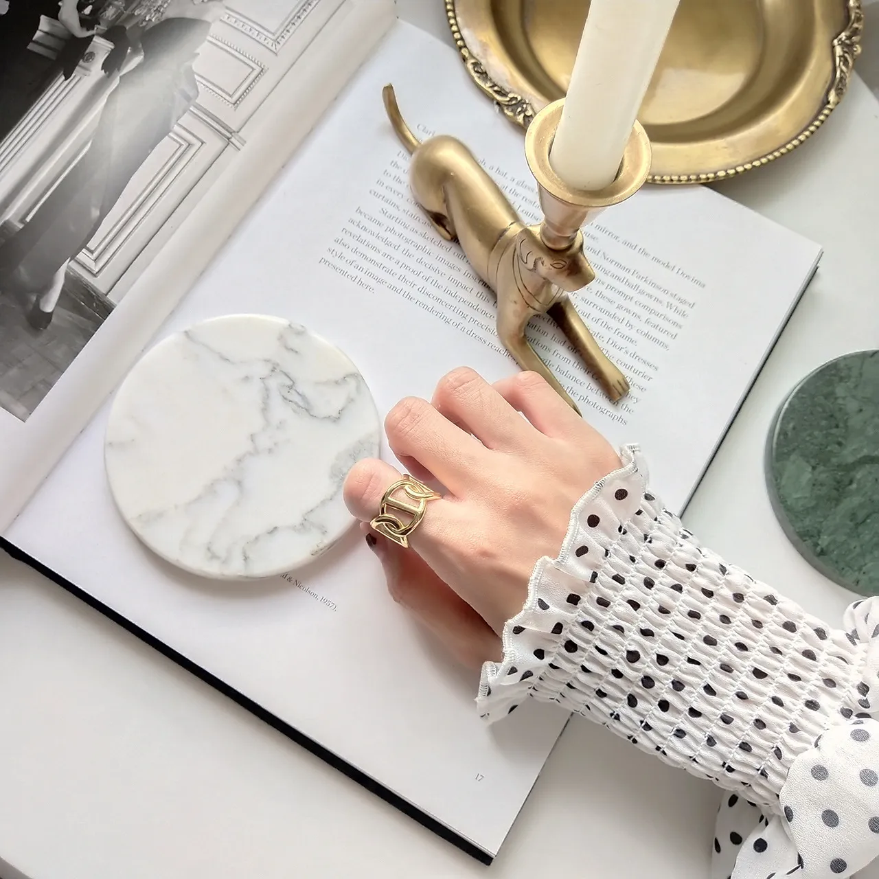 - Stacking with Other Rings: For a bold fashion statement, consider stacking the Ring-and-Loop Joint Ring with other minimalist or chunky rings. The combination of styles adds an individualistic edge to your jewelry collection.