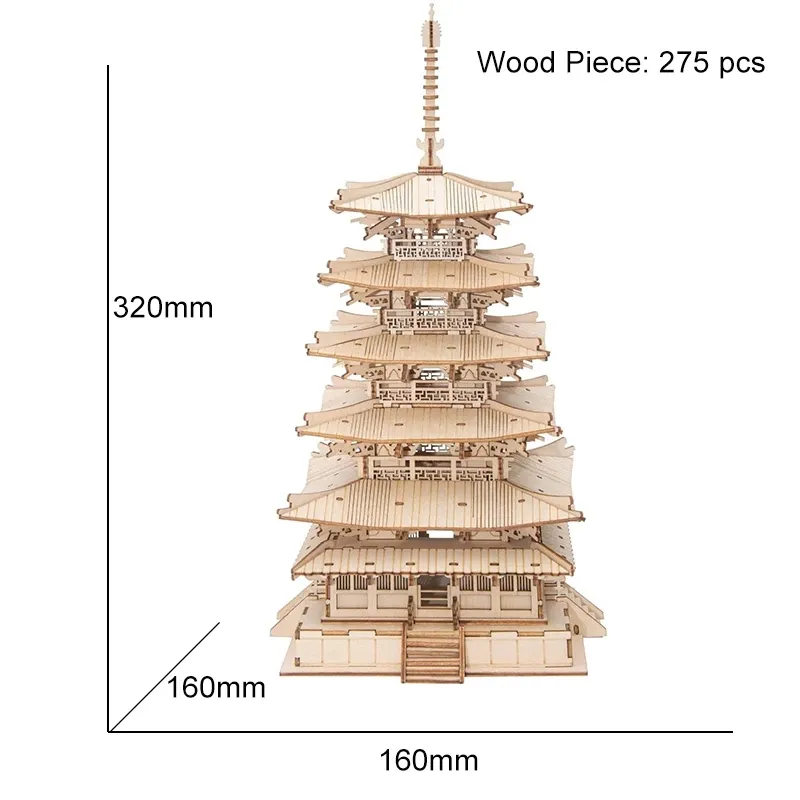 The Robotime Five-Storied Pagoda 3D Wooden Puzzle is a captivating and intricate assembly puzzle designed to challenge and entertain children, while also serving as a beautiful decorative piece once completed. This highly detailed puzzle allows kids to construct a stunning five-story pagoda, a traditional architectural marvel, using high-quality wooden pieces. Whether you're looking for a unique birthday gift or a fun Christmas present, the TGN02 Pagoda Puzzle is sure to inspire creativity, problem-solving, and an appreciation for craftsmanship in kids and adults alike.
