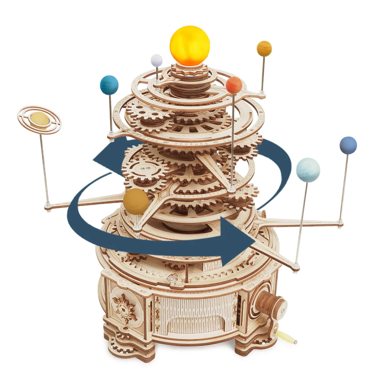 Rotatable Design: Once assembled, the mechanical orrery can be rotated to simulate the motion of celestial bodies, adding