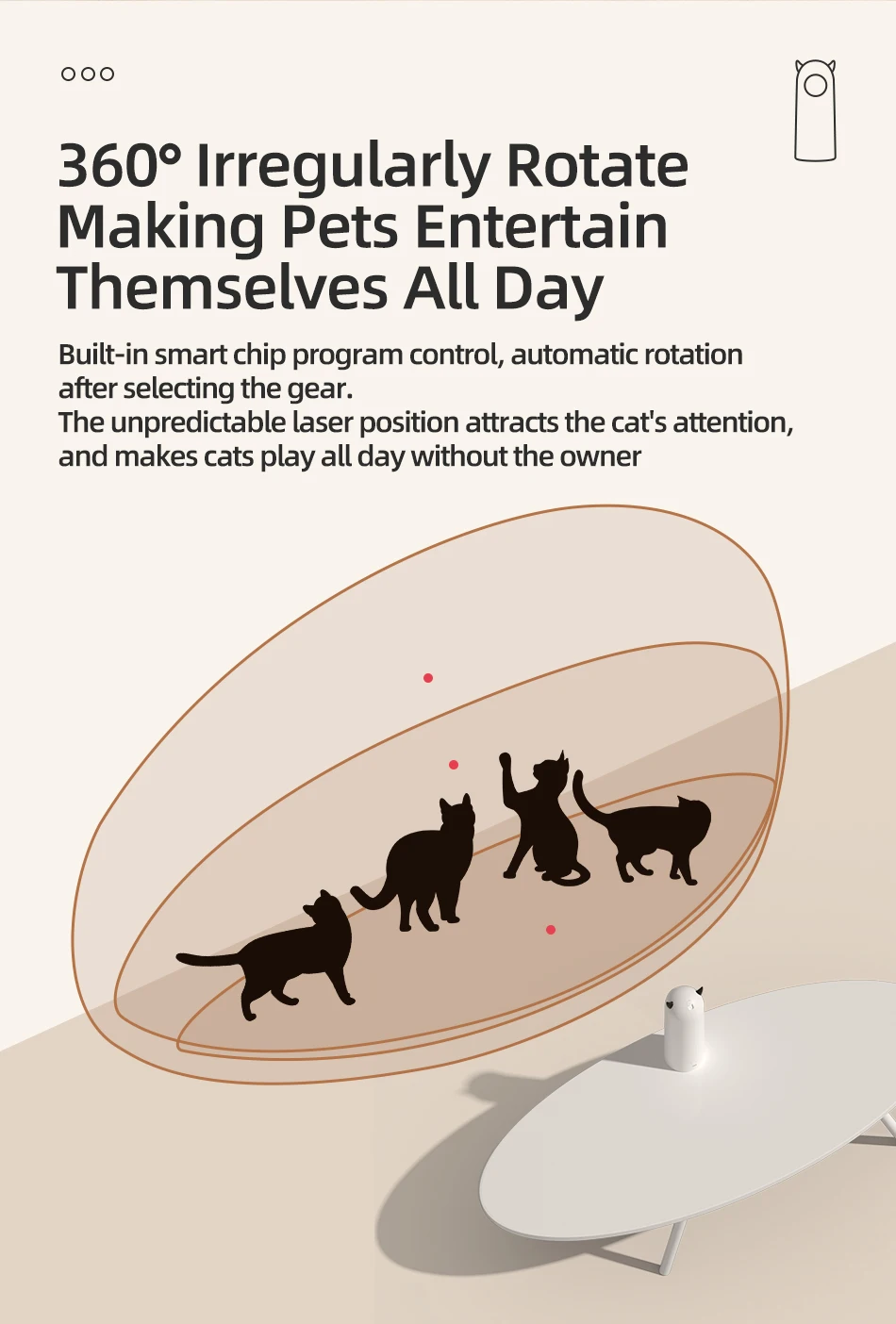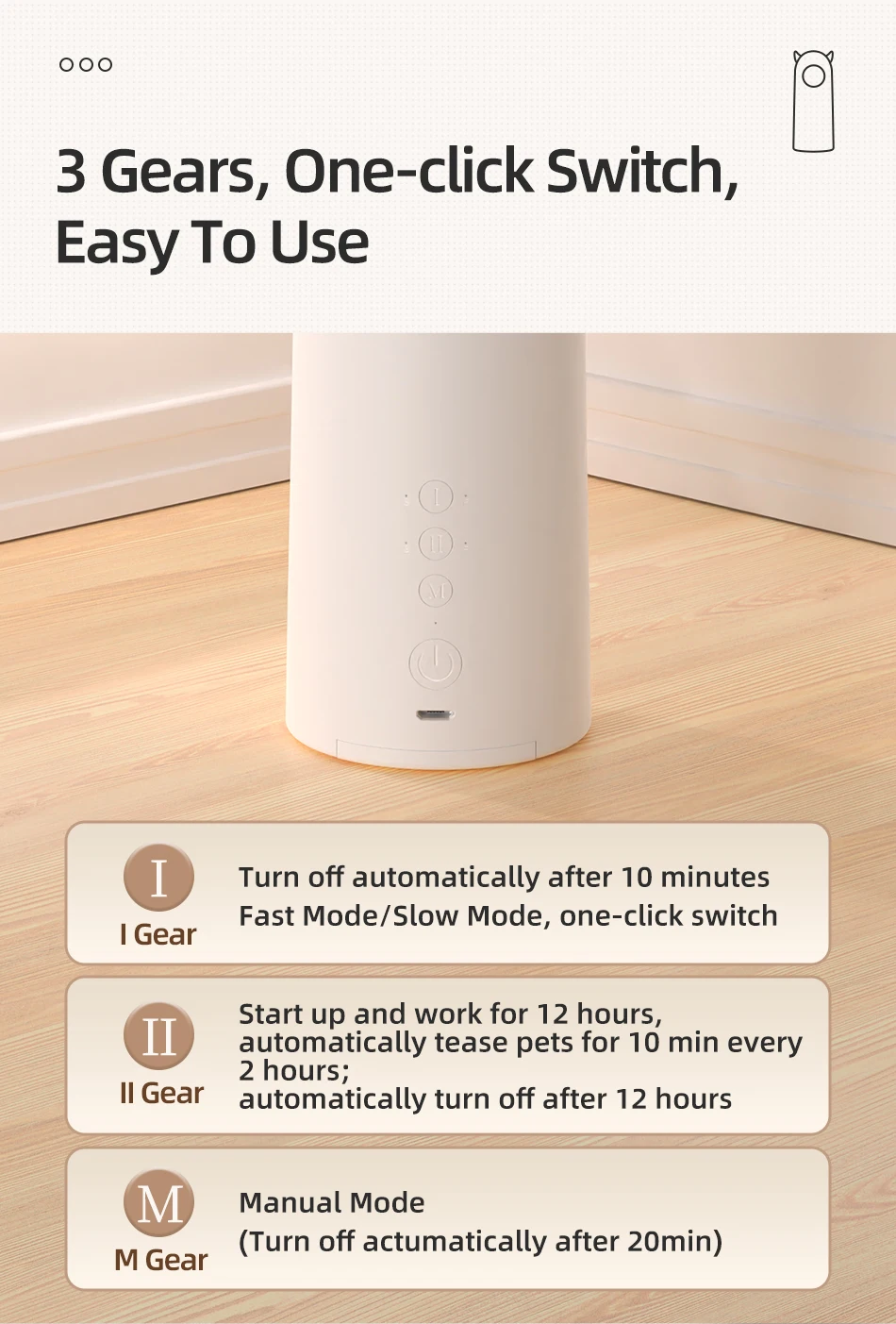 - Automatic Mode: Ideal for hands-free operation. Place the toy on a flat surface, and let it entertain your pet with erratic laser patterns.