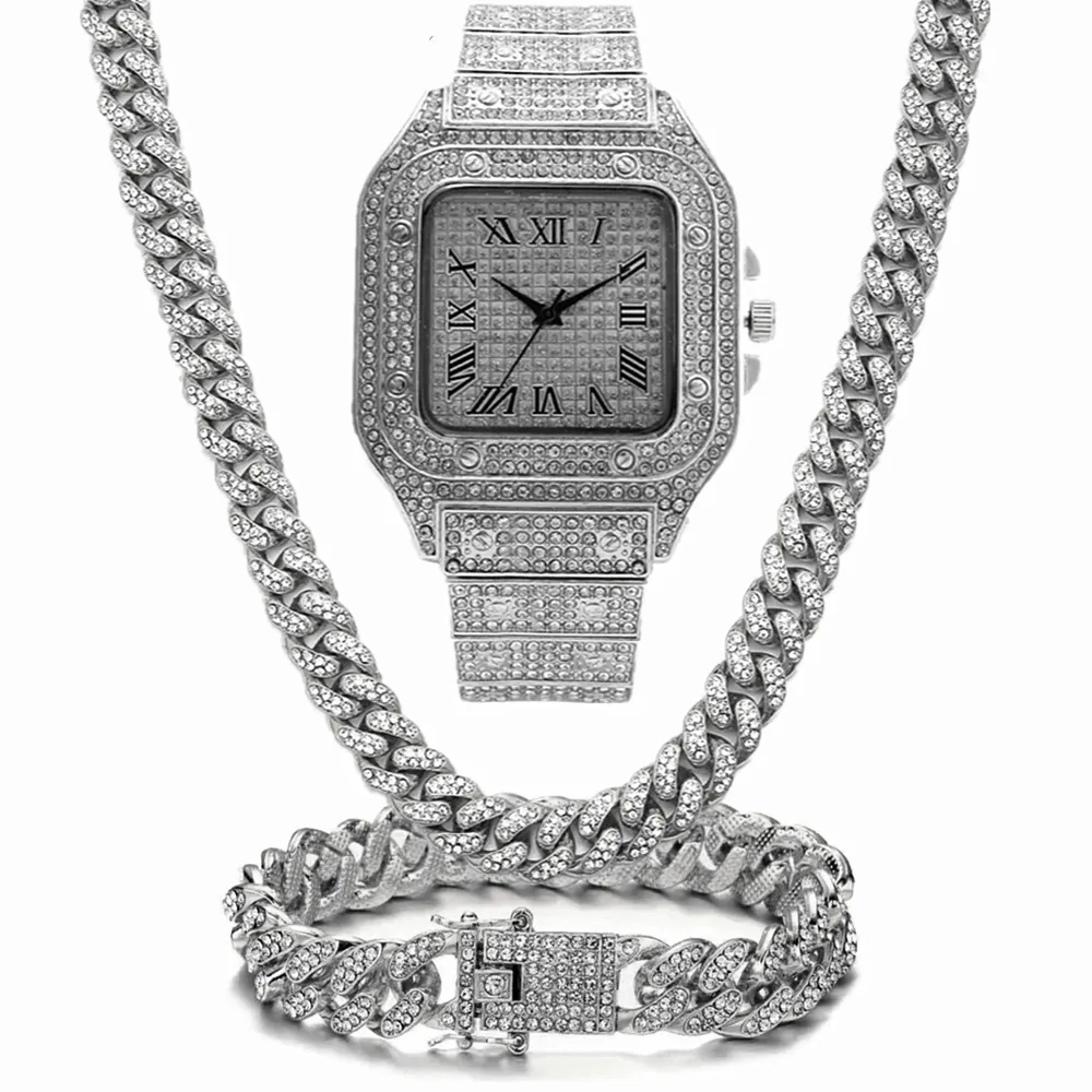 Name: Cross border luxury fashion square diamond studded roman scale quartz watch set 3pcs/set