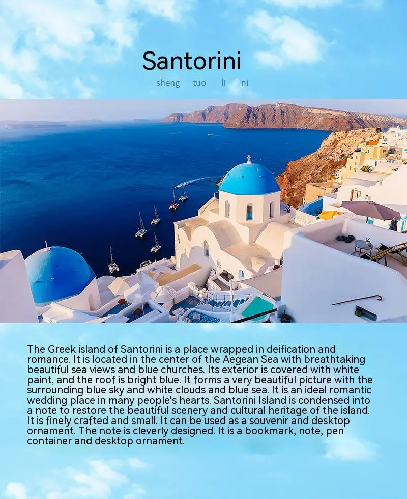 Introduction to the Romantic Santorini 3D Notepad Paper Carving Building Model Lighting Decoration