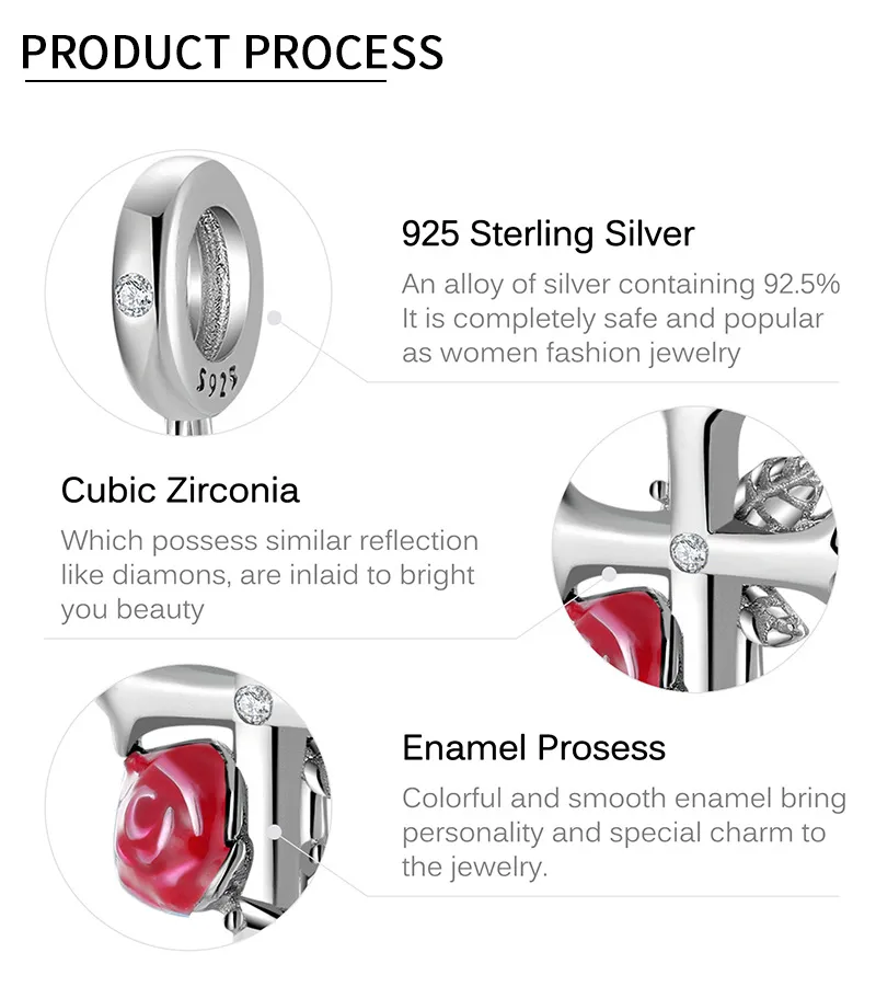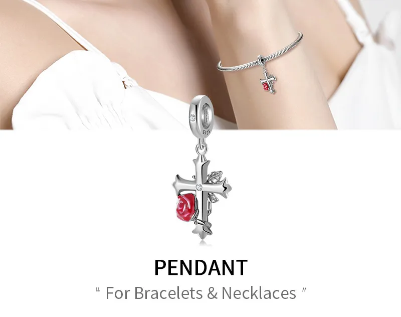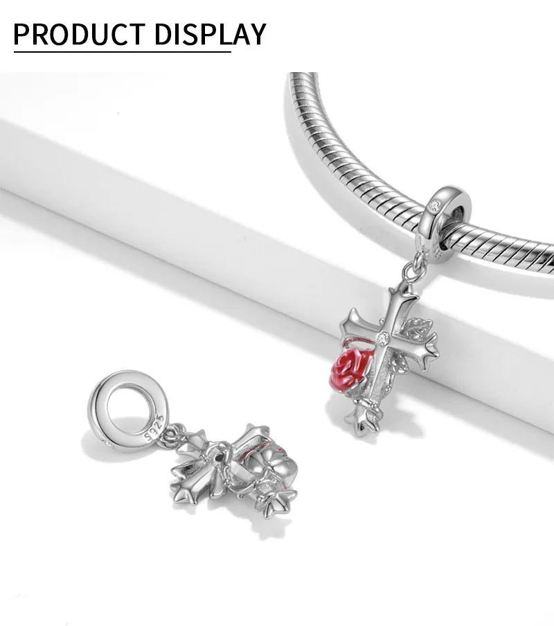 Rose Cross 925 Sterling Silver Oxide Pendant Bracelet Bracelet Pendant DIY Accessories