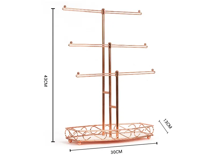 Rose Gold 3-Tier T-shaped Jewelry Display Storage Rack