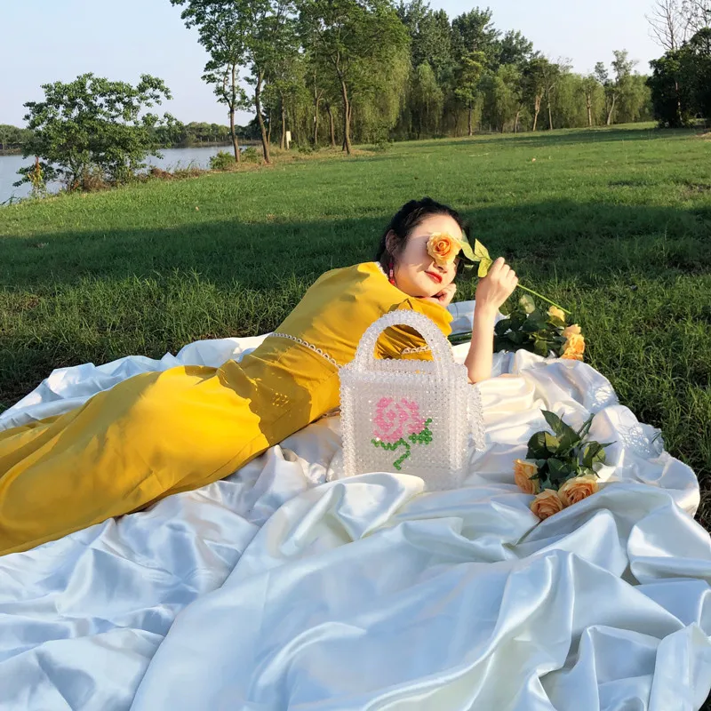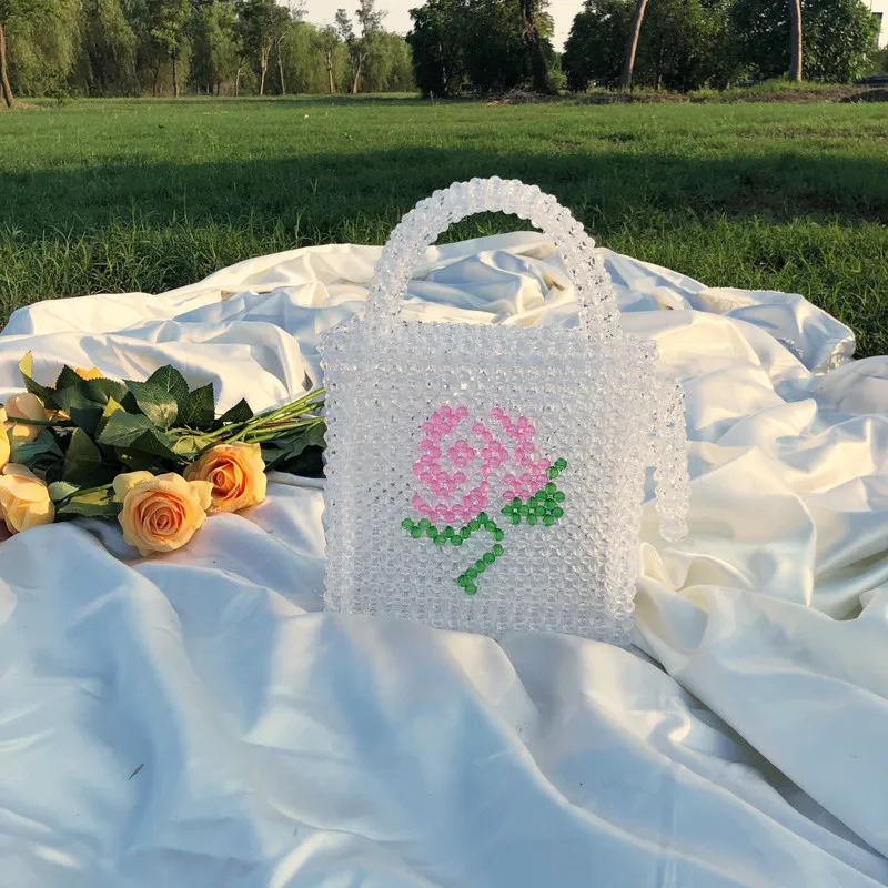 Rose Pattern Beaded Handmade Handbag