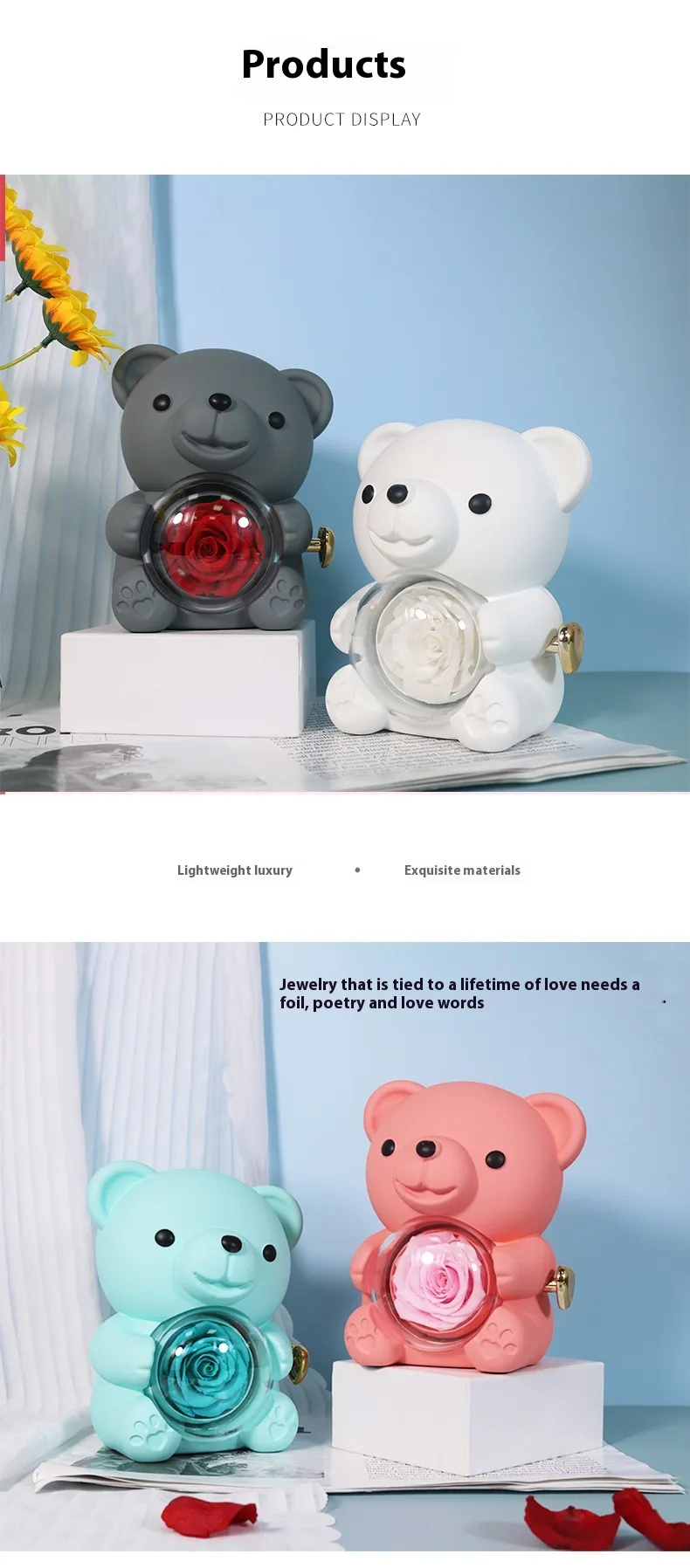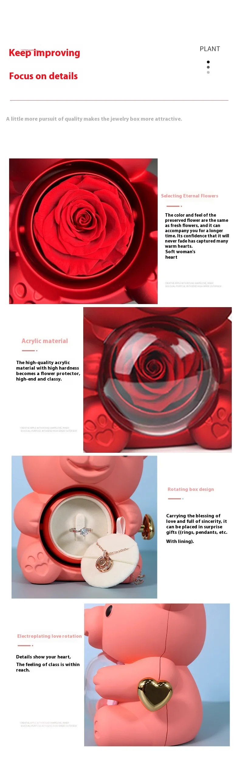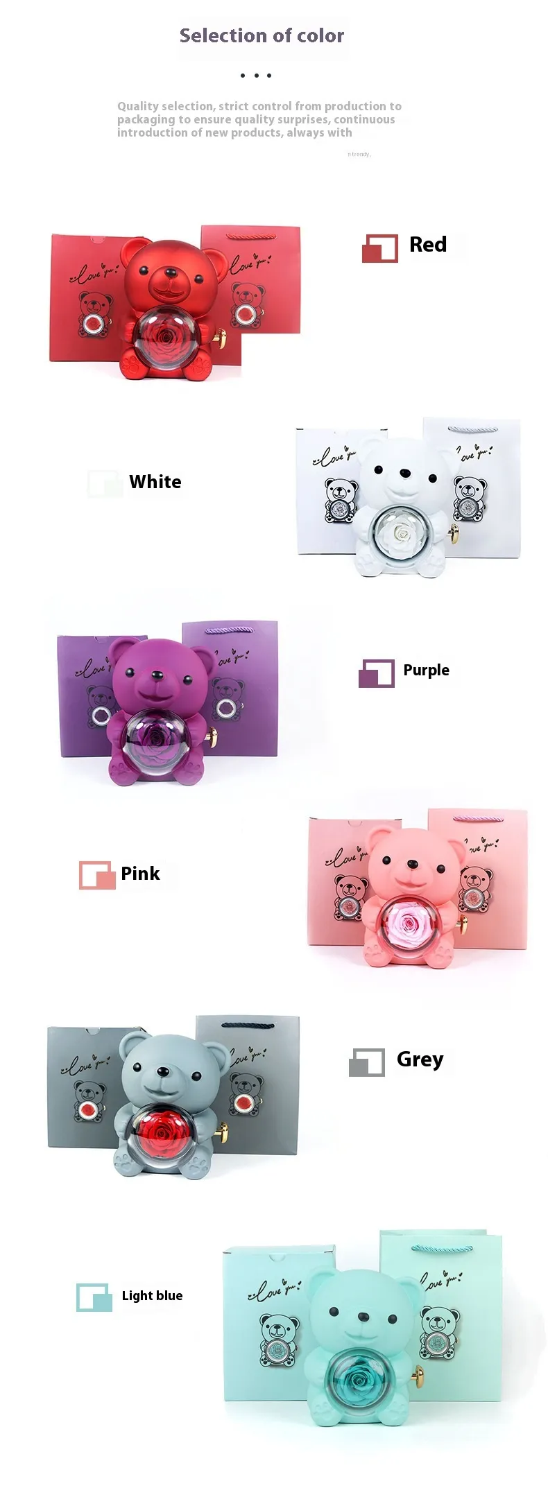 Rotating Bear Gift Box: Rose Jewelry Box for Special Occasions