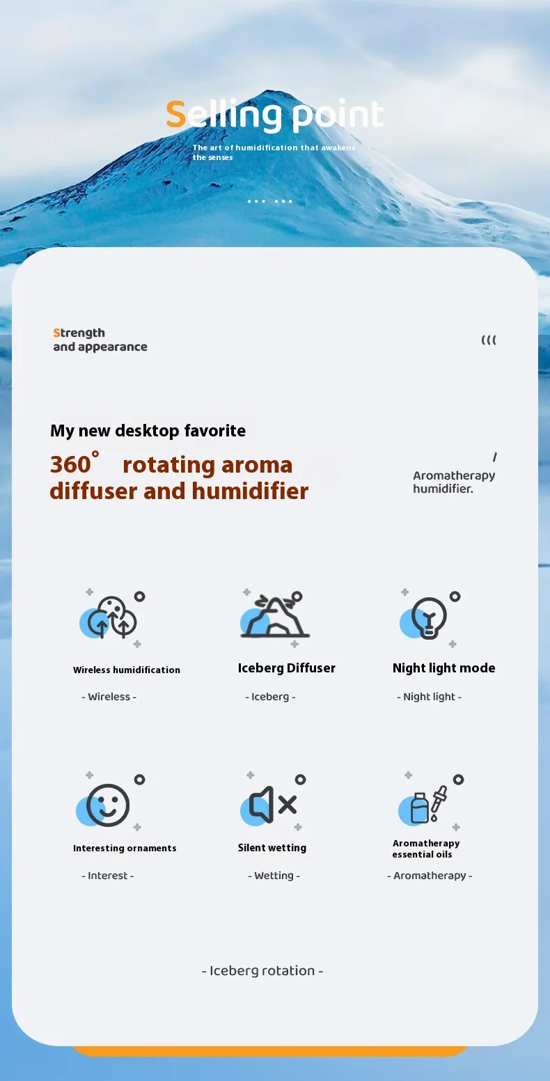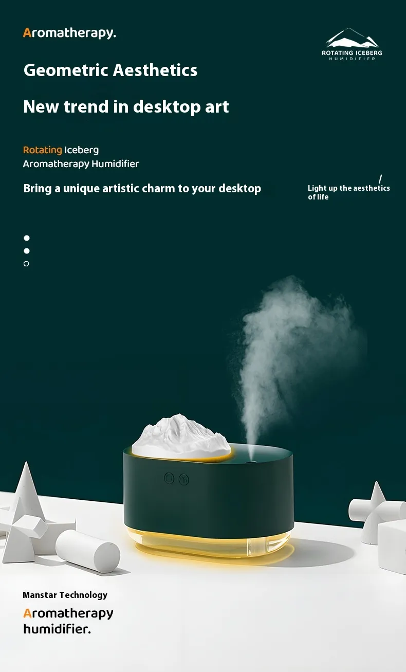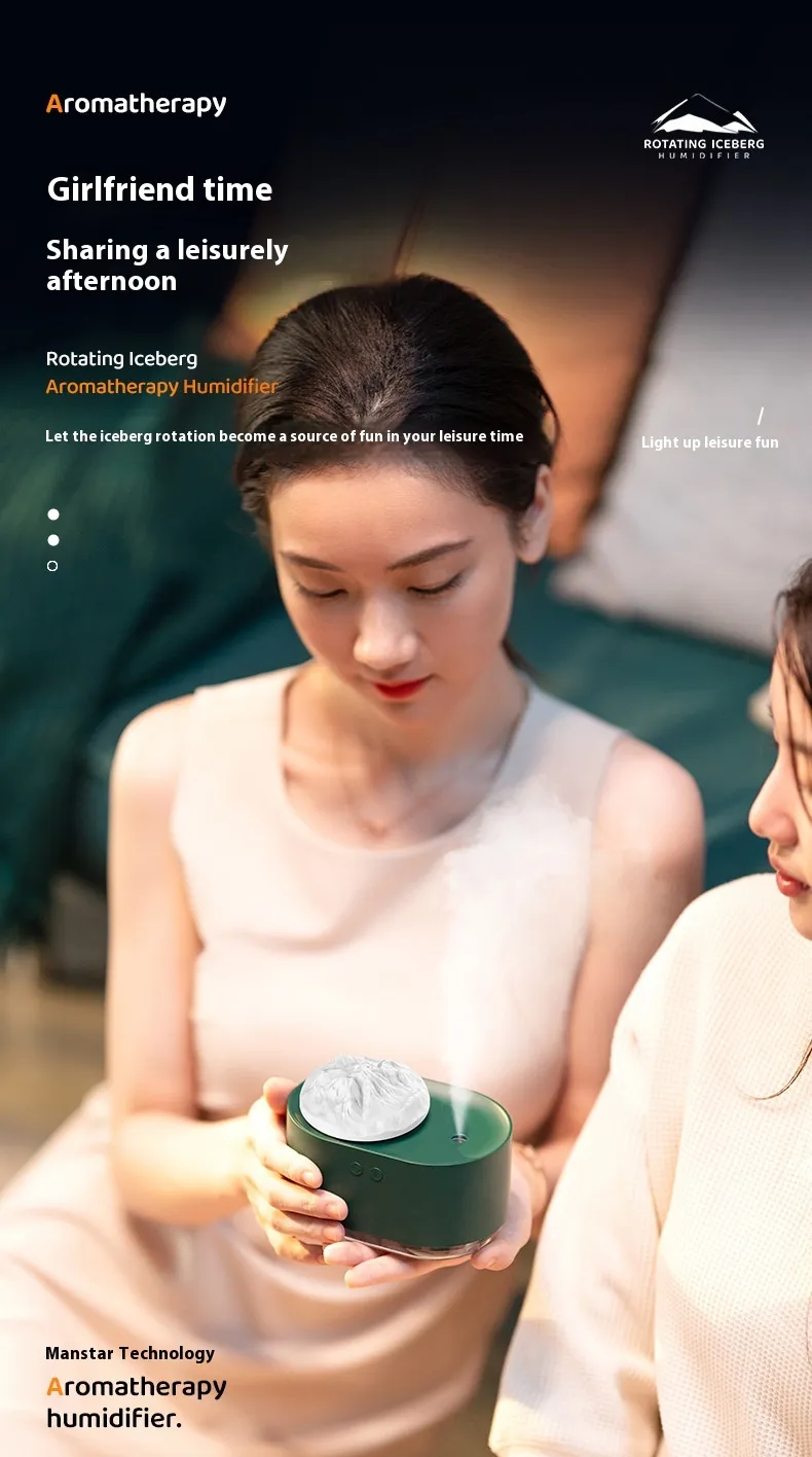 Rotating Iceberg Aromatherapy Spray Mute USB Humidifier | Quiet and Soothing Humidification for Your Home