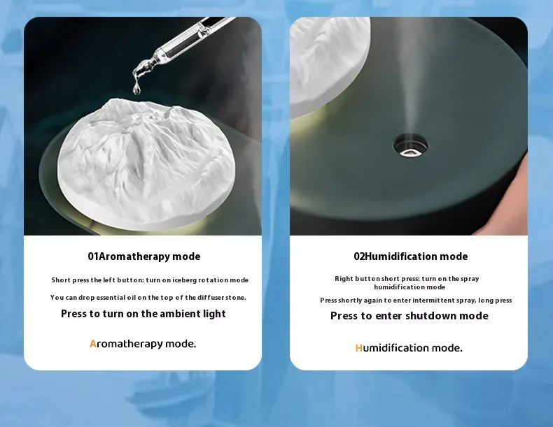 In today's fast-paced world, creating a comfortable and soothing environment is more important than ever. The Rotating Iceberg Aromatherapy Spray Mute USB Humidifier offers a versatile and practical solution to improve your indoor air quality while adding a touch of elegance to your space. Whether you're using it to relax after a long day, as a sleep aid, or simply to freshen up the air, this humidifier combines the benefits of aromatherapy, humidification, and visual appeal in one sleek, functional design.