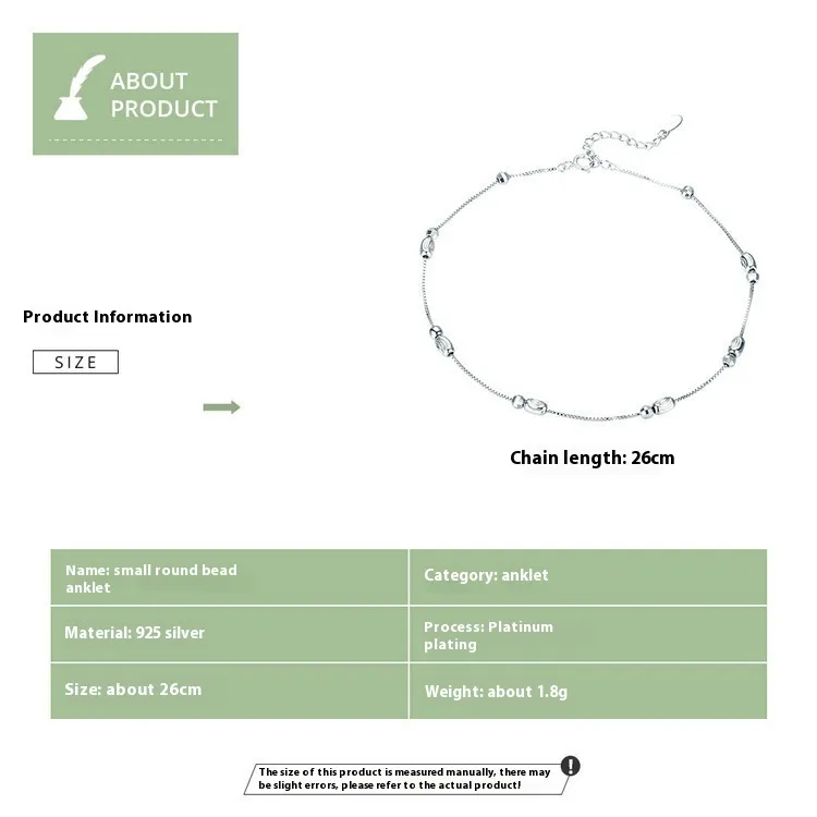 The Round Beads 925 Sterling Silver Fashion White Gold Plated Anklet offers several standout features and benefits:
