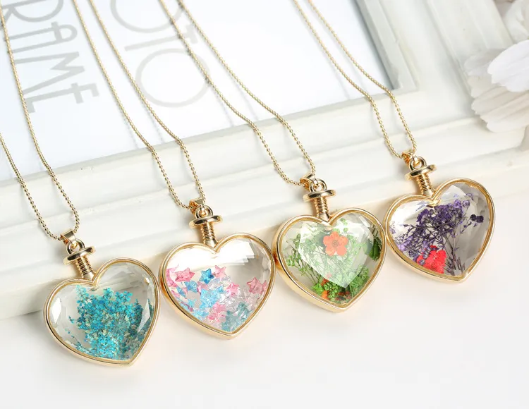 Each pendant contains a colorful specimen of dried flowers, carefully selected for their vibrant hues and delicate shapes. No two pieces are the same, making each necklace a one-of-a-kind creation. The dried flowers preserved within the pendant are a perfect representation of the fleeting beauty of nature, allowing you to carry a piece of the outdoors with you wherever you go.