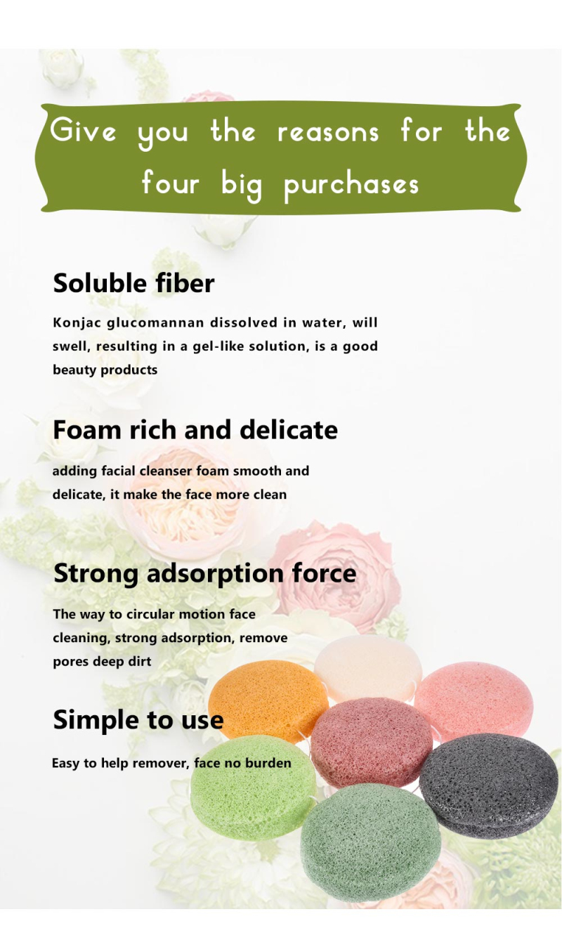 Konjac face washing is made from the konjac rhizome (natural plant fiber), extracted from Konjac essence. Its texture is mild and natural