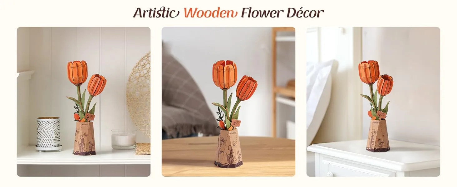 Whether you're looking for a relaxing activity, a way to enhance your living space, or a thoughtful gift idea, the Rowood 3D Puzzle DIY Wooden Flower Kit is a perfect choice for a meaningful, creative project.