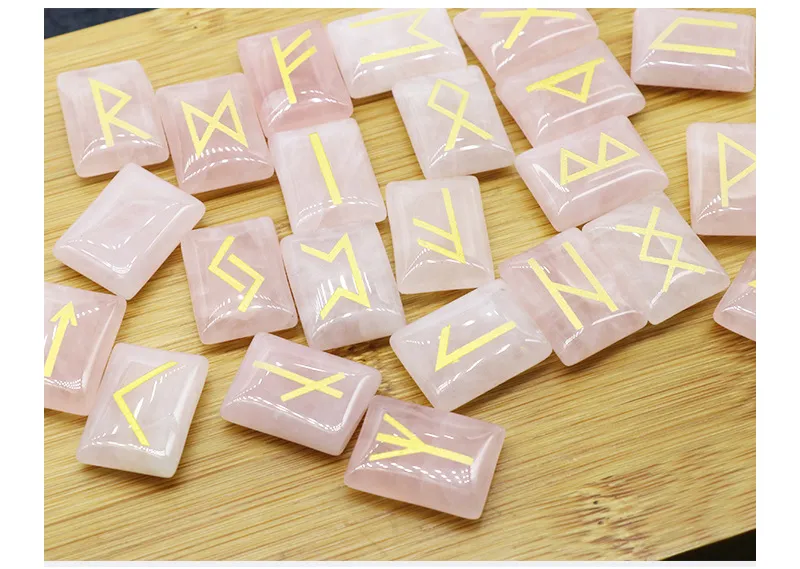 The runes are meticulously carved into the surface of the semi-precious stone, with each symbol representing a specific energy or concept. The carving process is done with precision, ensuring that the runes are clear and well-defined. The detailed carvings not only provide functional use for divination but also add an aesthetic and spiritual layer to the stone, making it a beautiful item for display.