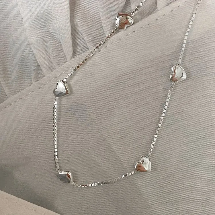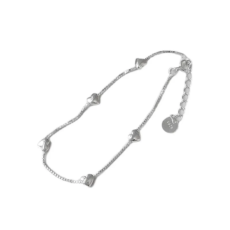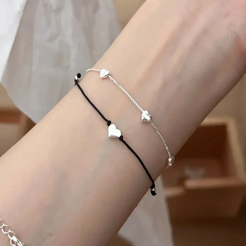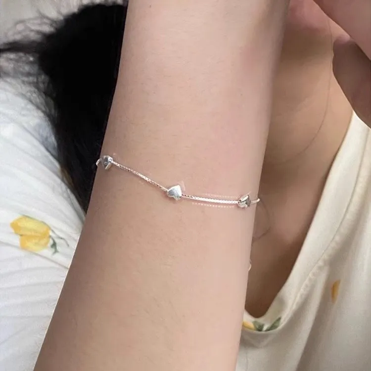 S925 Loving Heart In Sterling Silver Bracelet Female Ins Mori Sweet Temperament