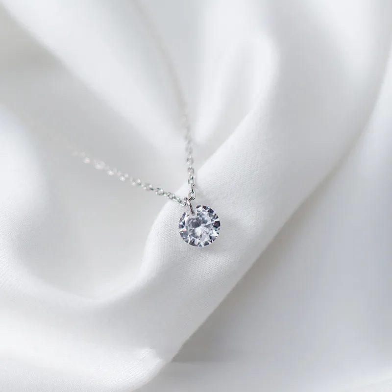 S925 Silver Necklace Pendant Female Diamond Necklace Simple Short Clavicle Chain