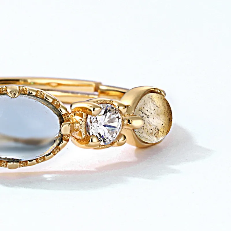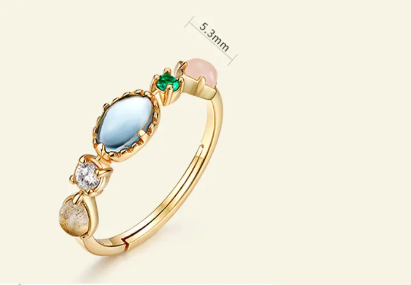 At the heart of the ring is the color zirconium rainbow stone, which symbolizes good fortune, positivity, and the fulfillment of wishes. The vibrant rainbow colors of the zirconium stone represent a spectrum of emotions, from joy and happiness to hope and spiritual healing. The ring serves as a reminder to keep your dreams alive, as the rainbow symbolizes new beginnings and the endless possibilities ahead.
