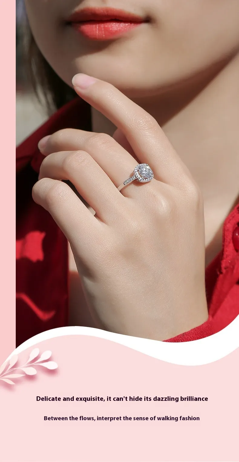 S925 Silver Ring Square Surrounding Ring Set With Moissanite
