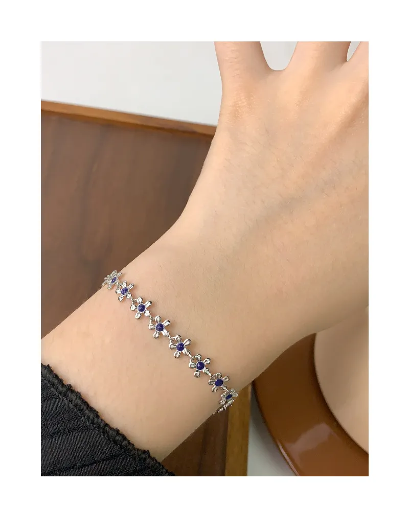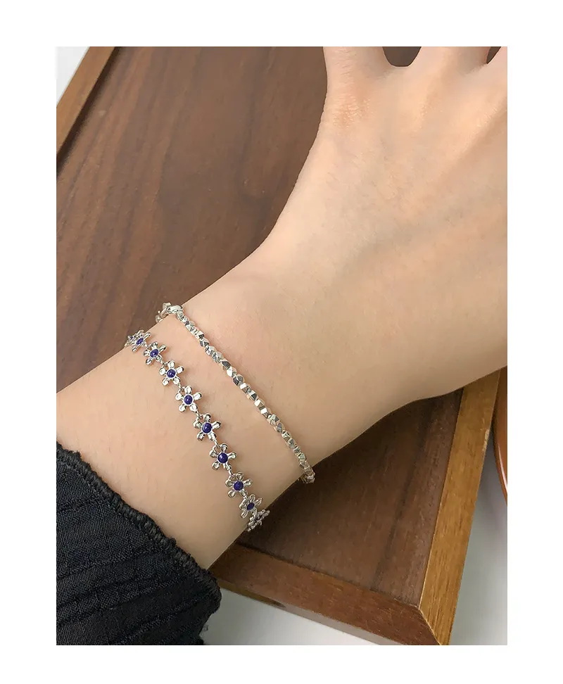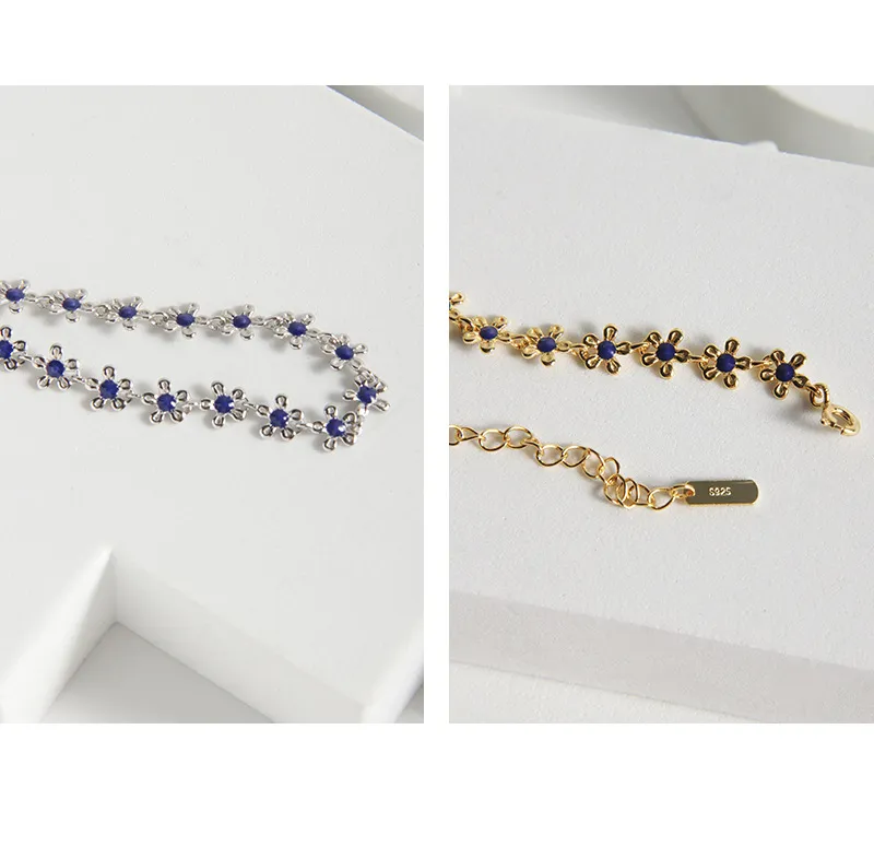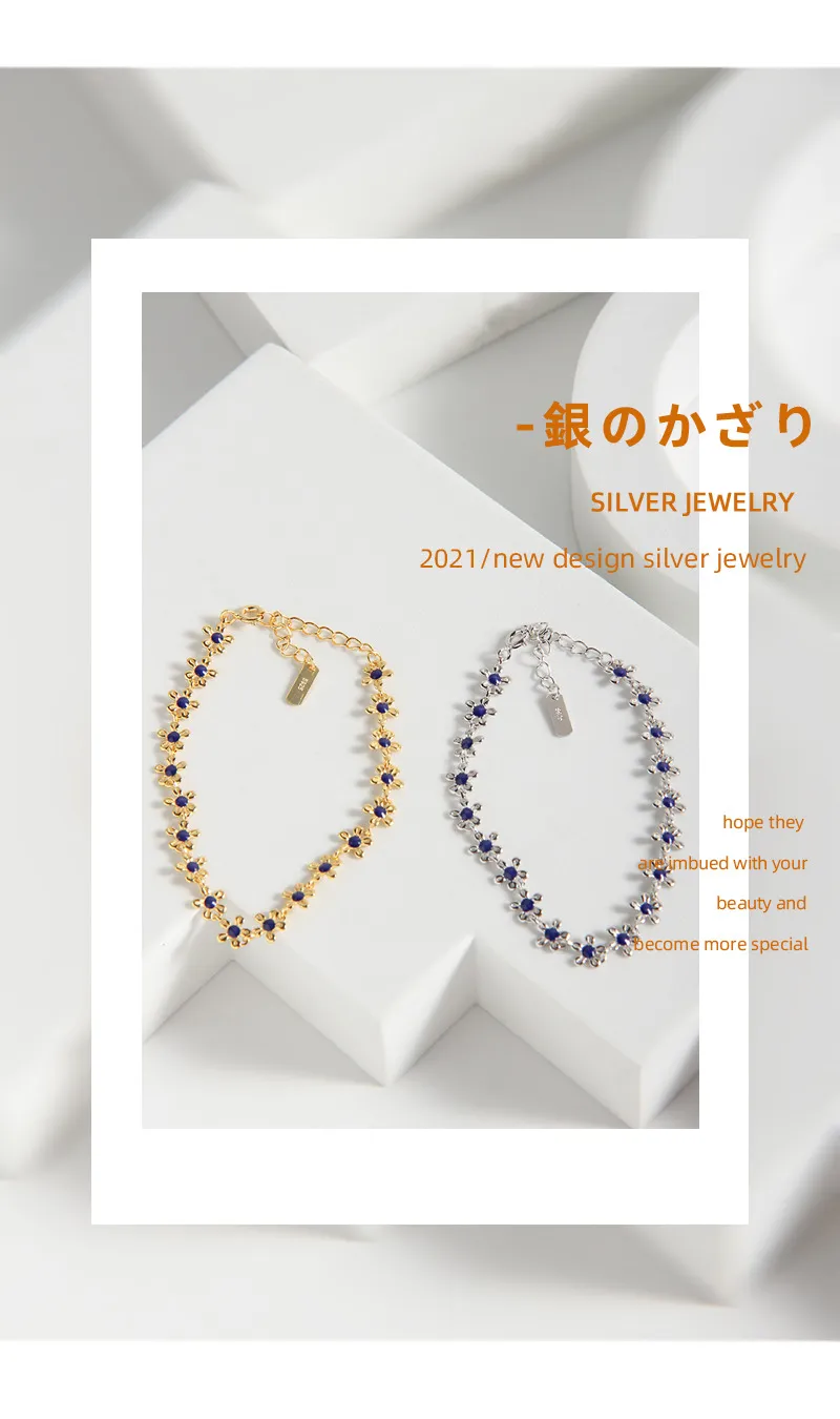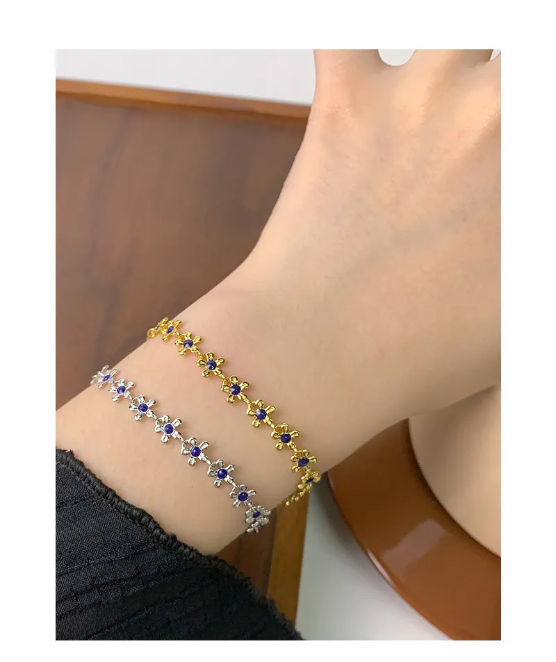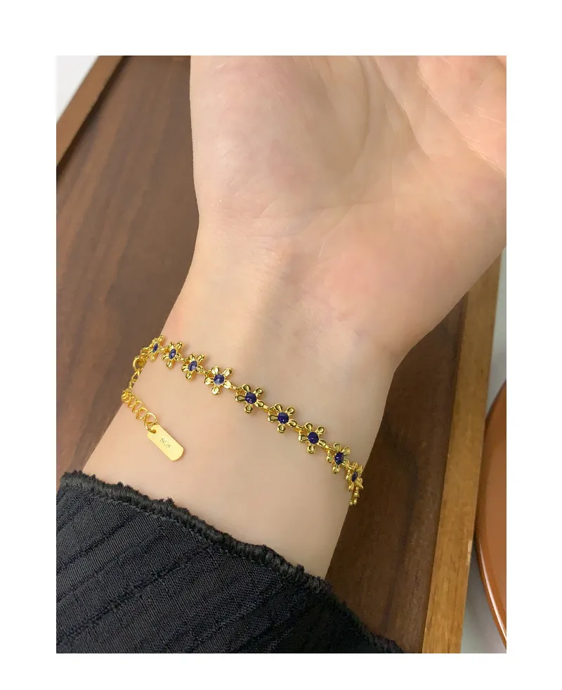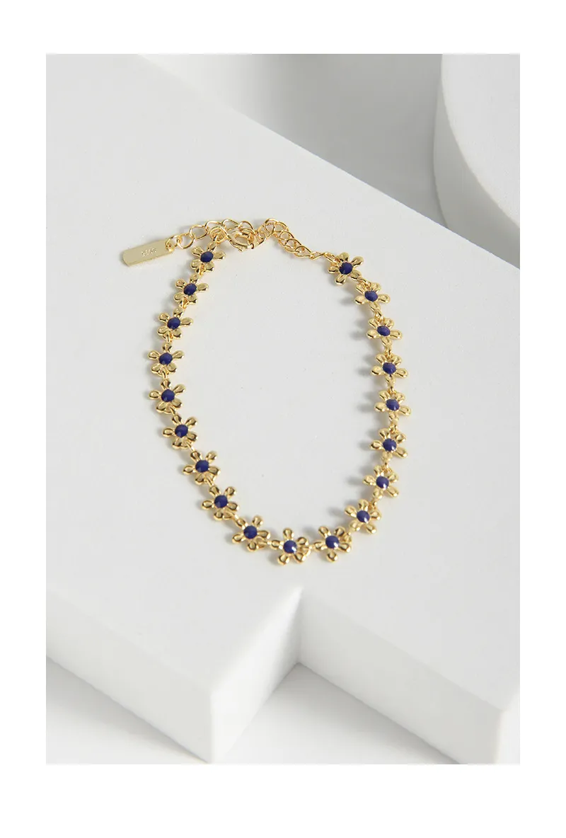 S925 Sterling Silver Gold Small Flower Drip Glazed Bracelet