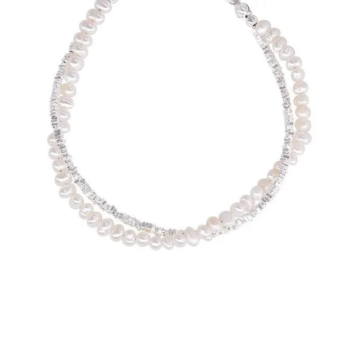S925 Sterling Silver Natural Baroque Pearl Small Pieces Of Silver Double-layer Bracelet