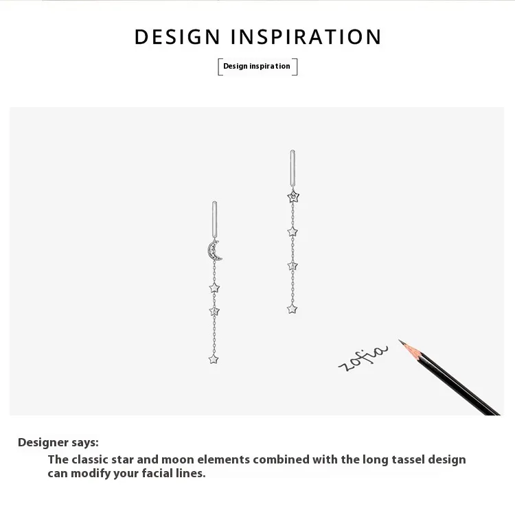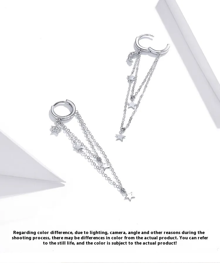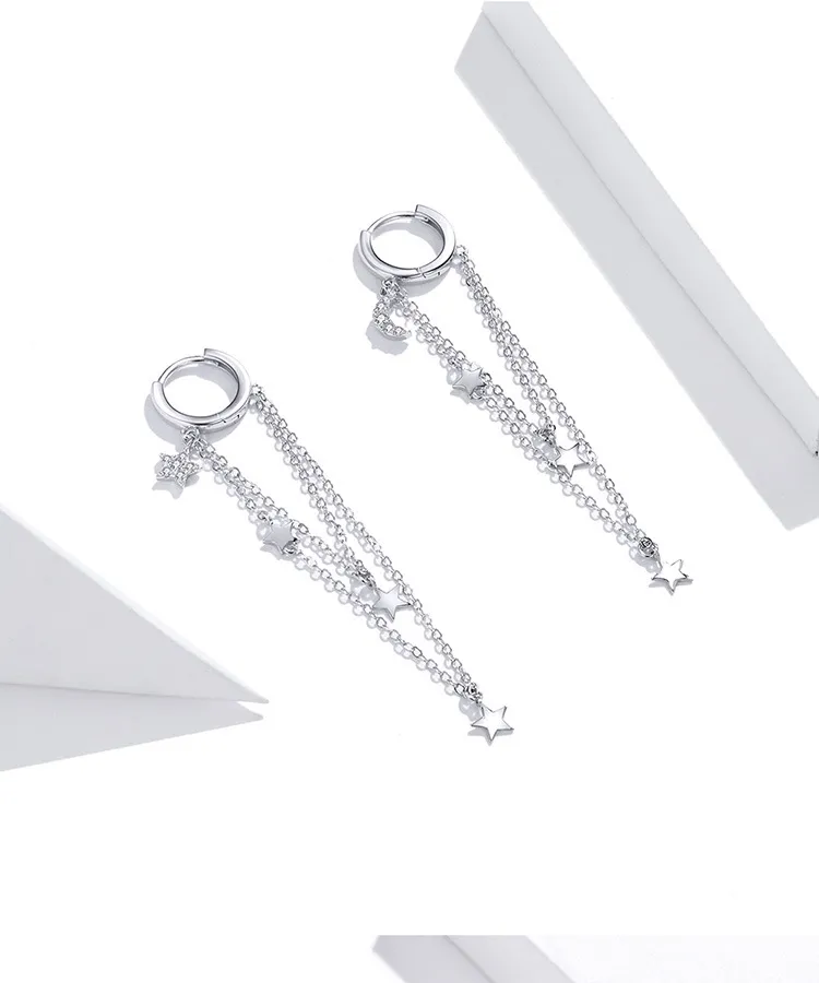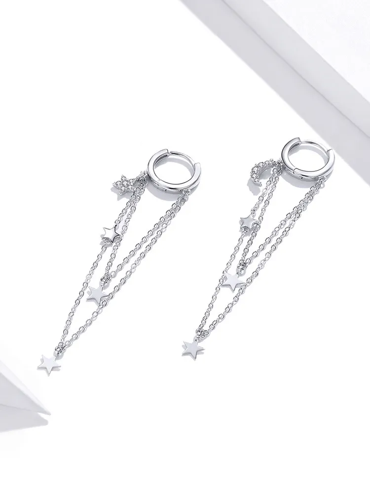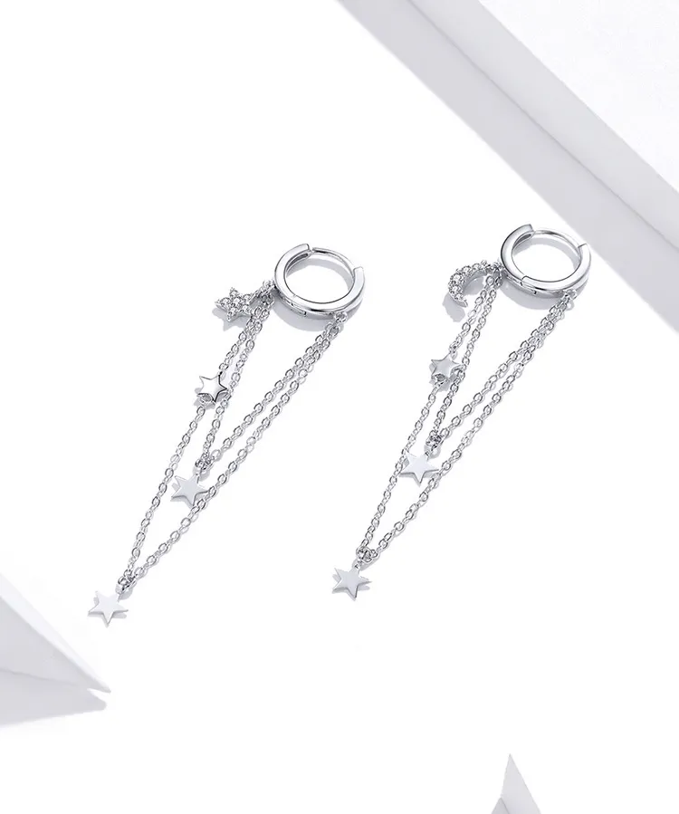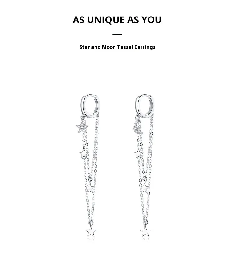 S925 Sterling Silver Star Moon Tassel Earrings