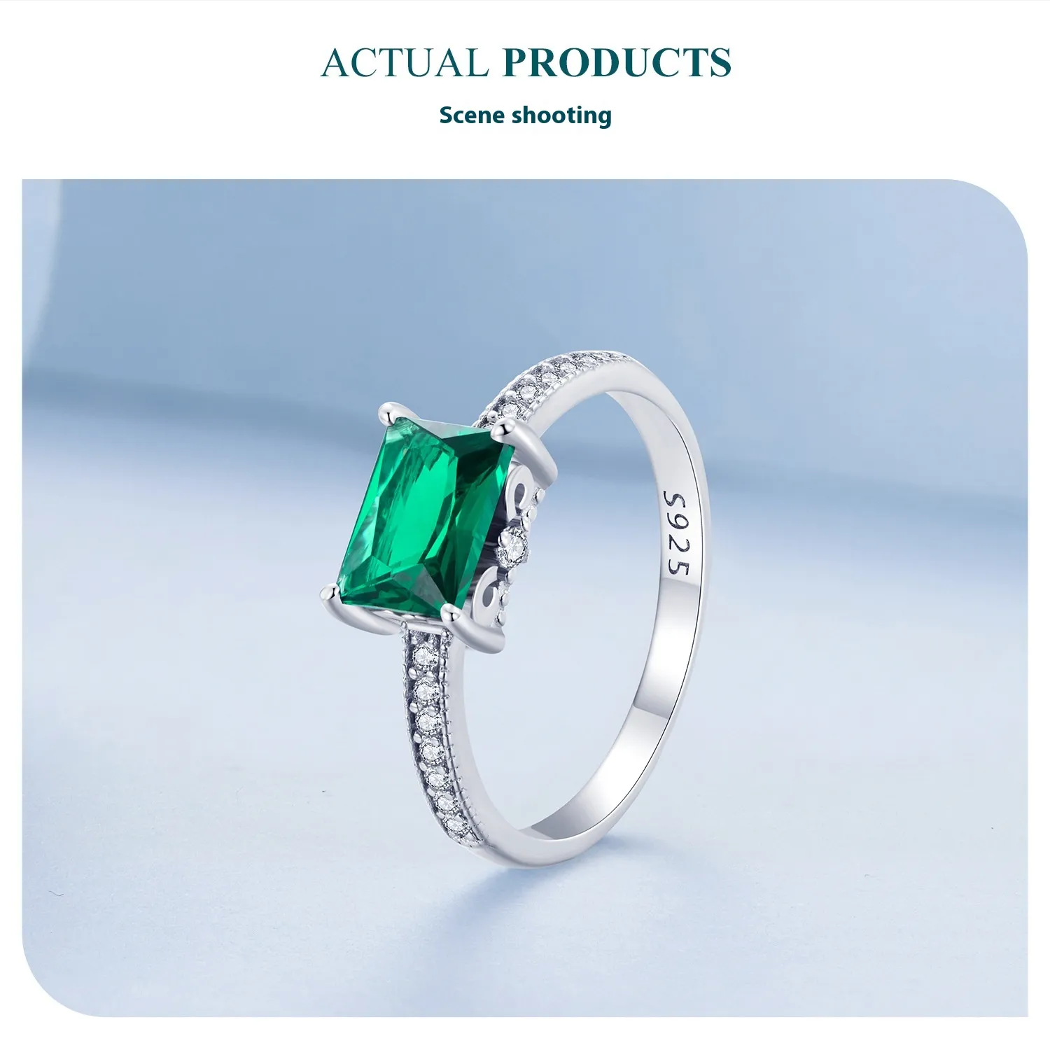 S925 Sterling Silver White Gold Plated Green Ring: A Touch of Elegance and Timeless Beauty