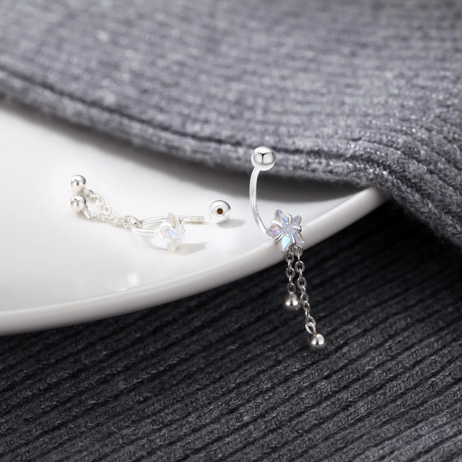 S999 Sterling Silver Screw Tightening Buckle XINGX Tassel Ear Bone Stud Earrings