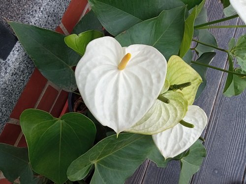 - Lush, Glossy Leaves: The plant's heart-shaped leaves are dark green and waxy, providing a lush backdrop that highlights the purity of its white flowers. The foliage itself is a decorative element, bringing a touch of the tropics indoors.